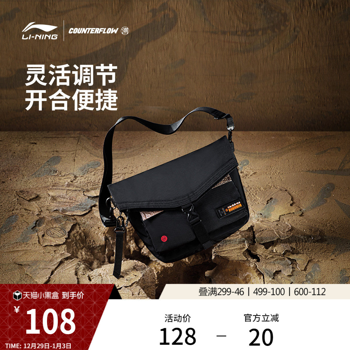 李宁户外CF溯丨邮差包女单肩包斜挎包男经典休闲轻便运动包大容量