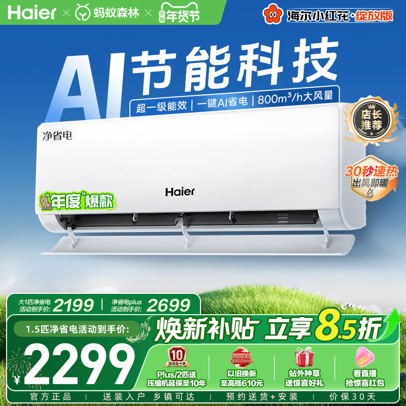 【镇店爆款】海尔空调净省电纯铜管1.5匹家用官方新一级挂机35E1