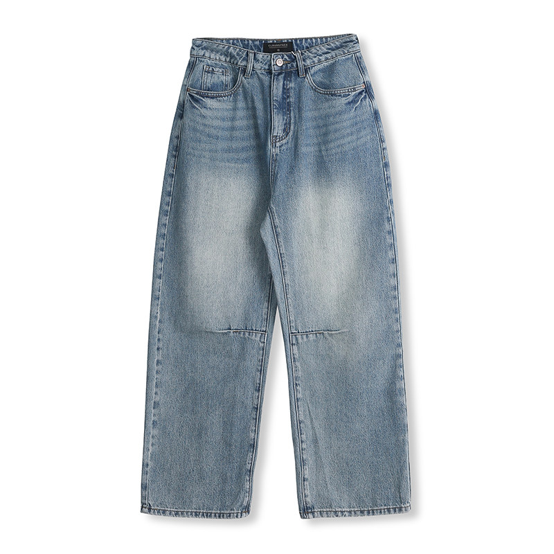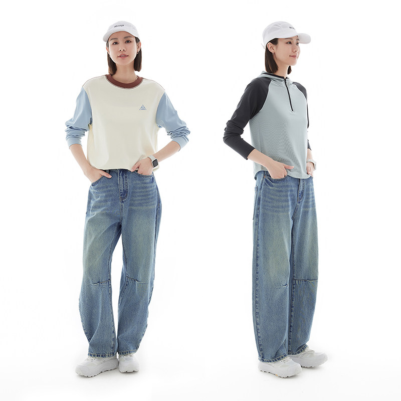 云上生活【海盐汽水裤】复古全棉牛仔裤春季宽松香蕉阔腿裤女下装