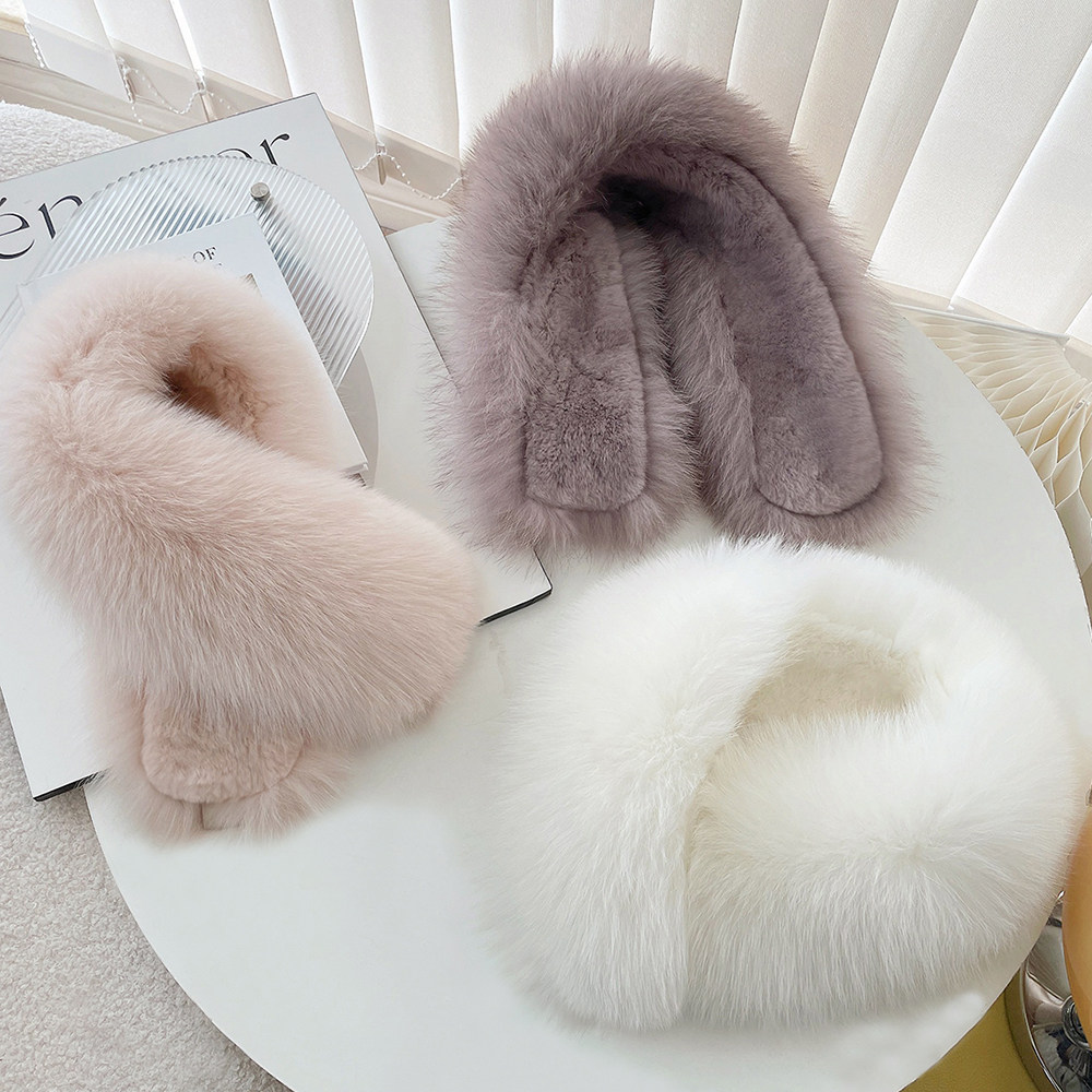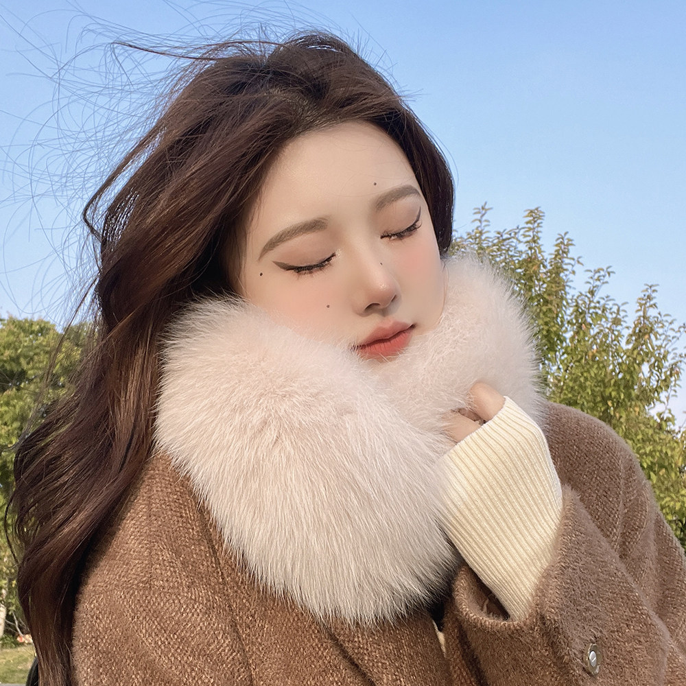 新品双面毛狐狸毛围巾女獭兔毛内衬冬季韩版百搭皮草围脖真毛领子