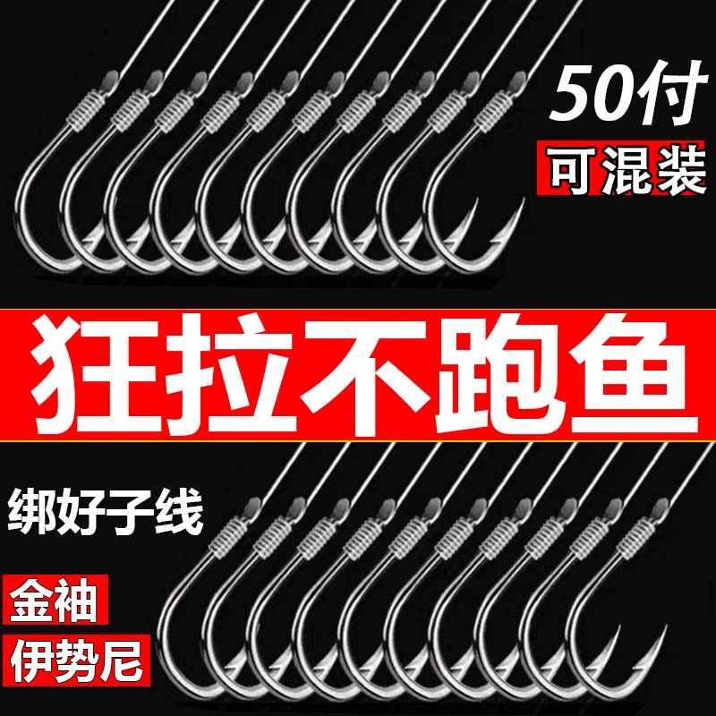 加强版50付鱼钩绑好子线双钩成品套装野钓金袖袖钩伊豆伊势尼鱼钩
