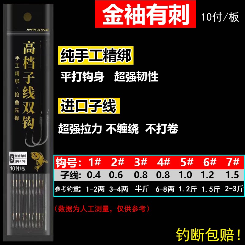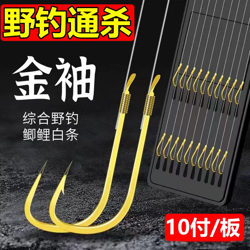鱼钩绑好短子线双钩成品套装钓鱼袖钩金海夕金袖渔具野钓鲫鱼钩