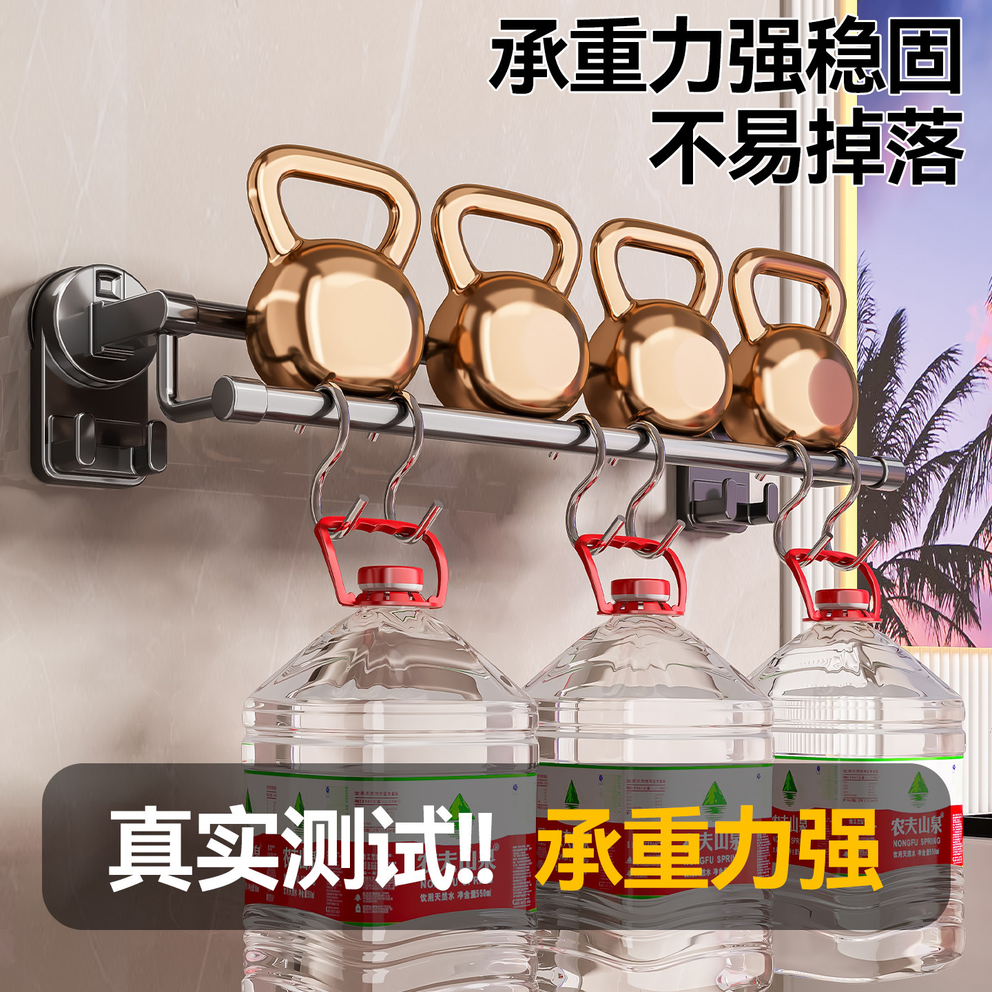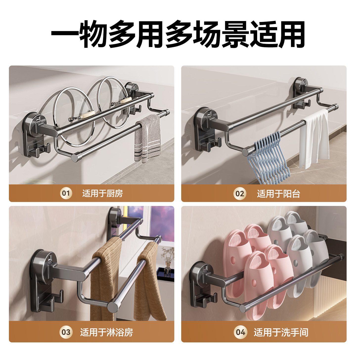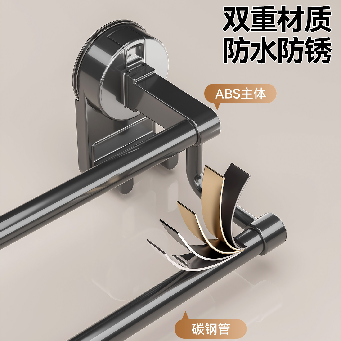 百悍吸盘毛巾杆毛巾架挂架卫生间免打孔浴室卫浴毛巾挂杆置物架