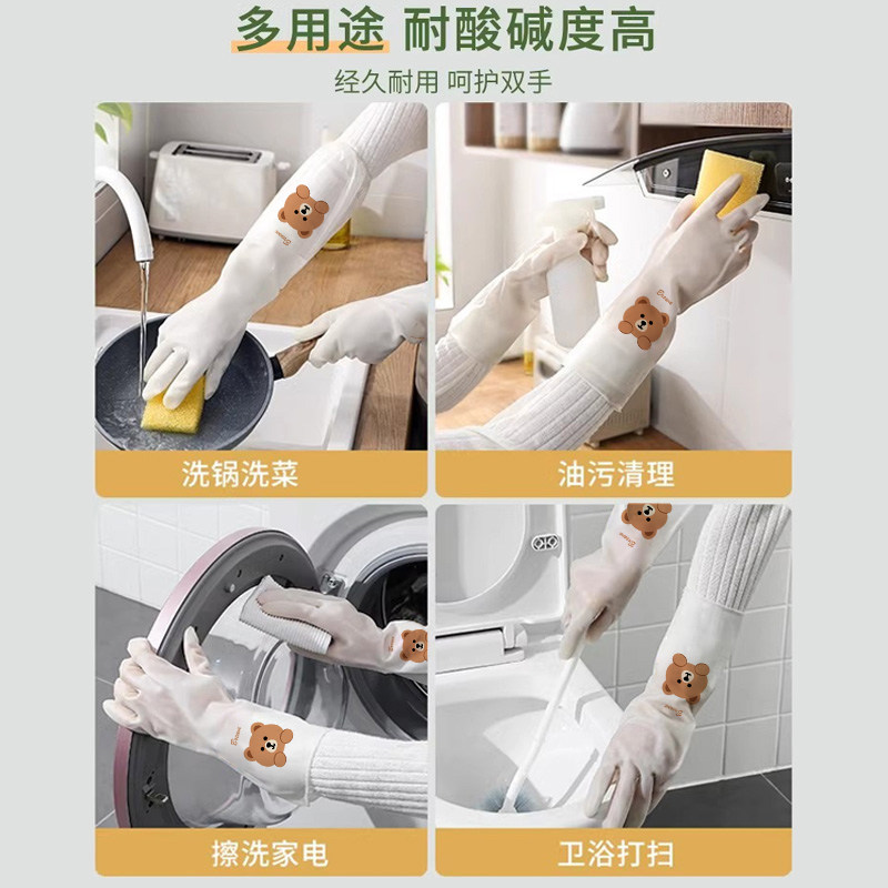 一体加绒手套洗碗家务厨房耐用型橡胶洗衣服刷加厚防水加长款洗菜
