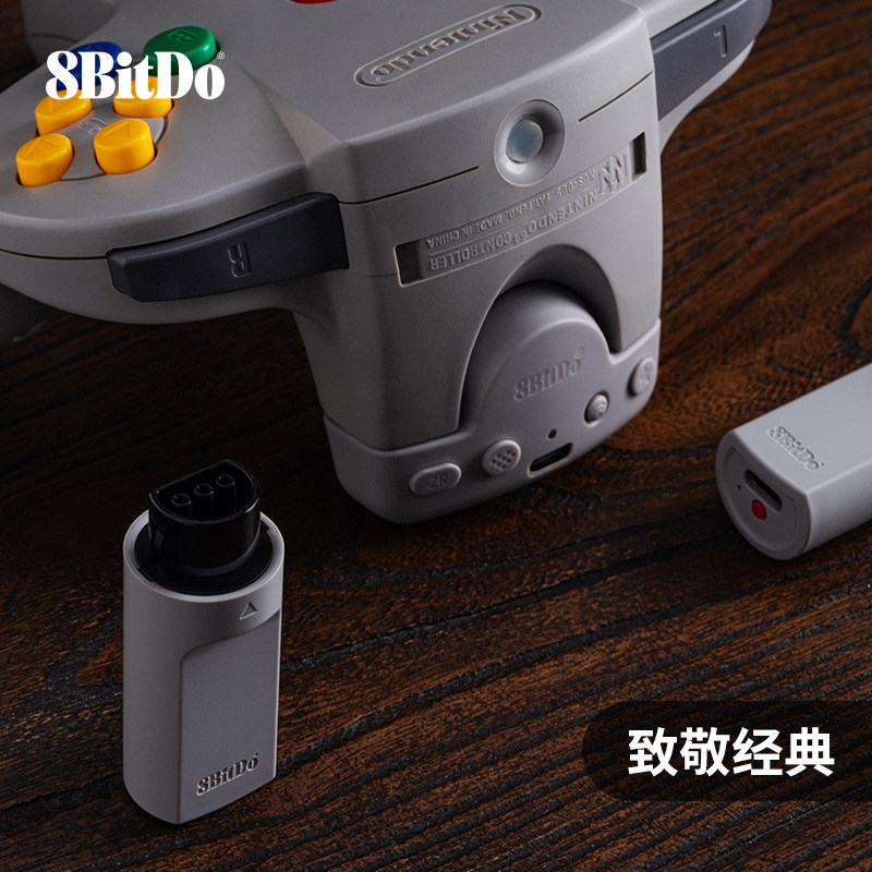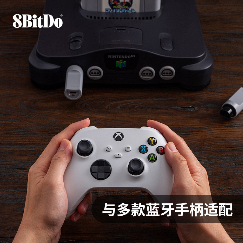 八位堂N64蓝牙接收器 Xbox/PS4/PS5/SwitchPro/猎户座/Pro3/SN30Pro/WII U Pro蓝牙游戏手柄无线连接N64主机
