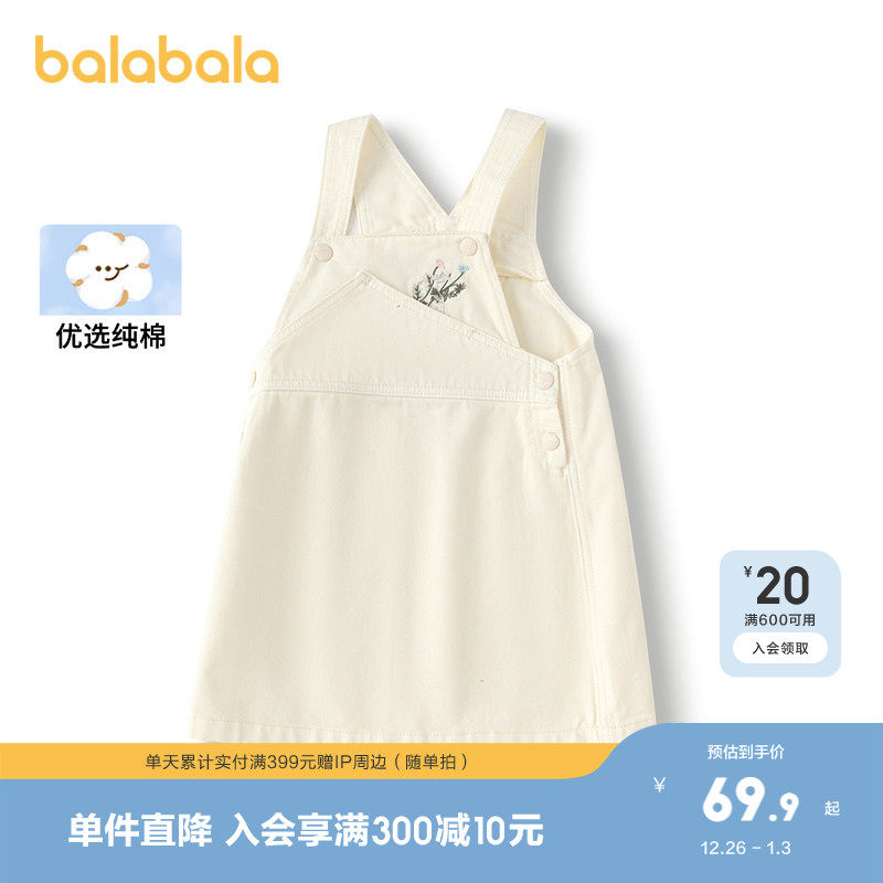 巴拉巴拉童装儿童连衣裙女童纯棉牛仔背带裙绣花秋季裙子时尚百搭