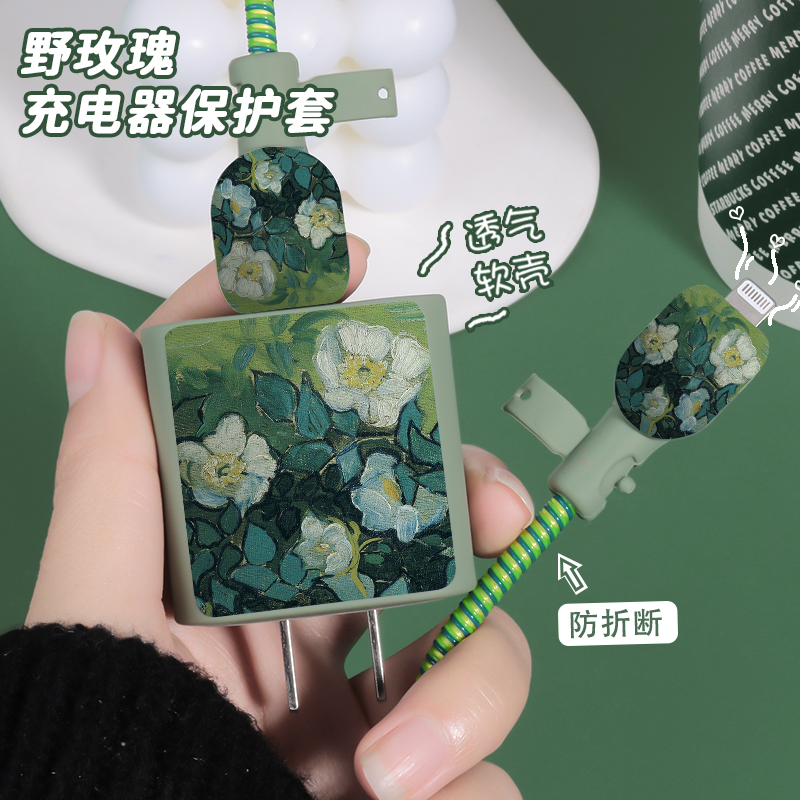 适用苹果17数据线保护套充电器保护壳iphone16promax手机壳充电线20W缠绕线保护ipad保护套苹果15/14硅胶印花