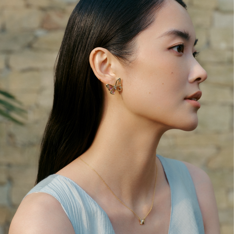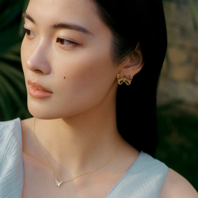 Fellala/翡拉拉「化蝶」系列大耳钉镂空匠心紫色限定耳饰