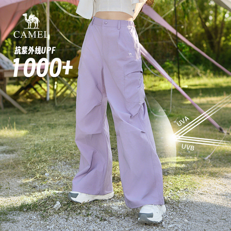 骆驼山海云朵裤女装2026春新款紫色宽松轻薄阔腿速干防晒工装裤子
