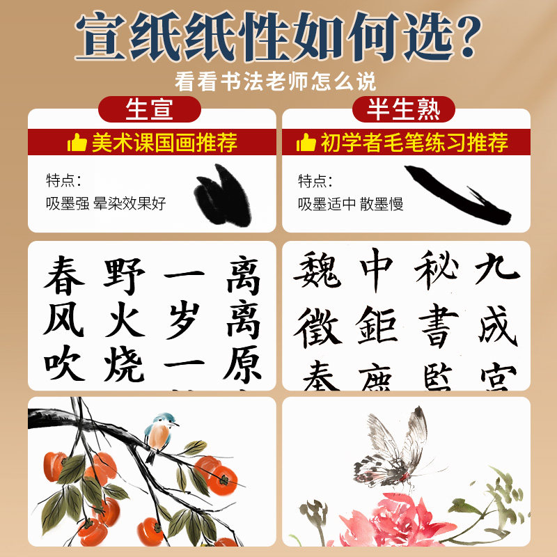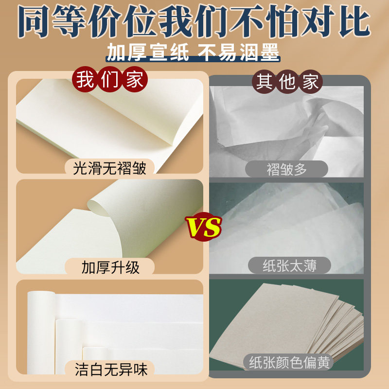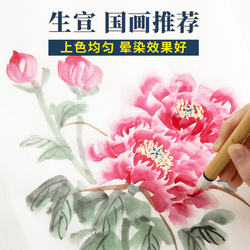 国画生宣纸专用8K生宣4K中国画美术生画画水墨画初学毛笔书法练字纸小学生书画练习纸熟宣4开8开国画颜料工具
