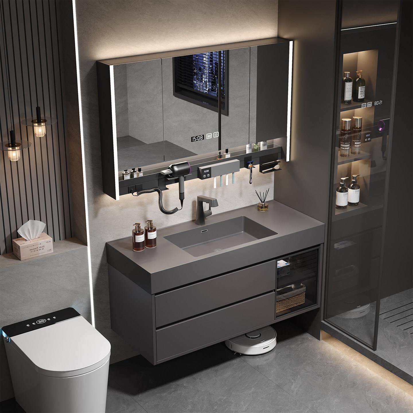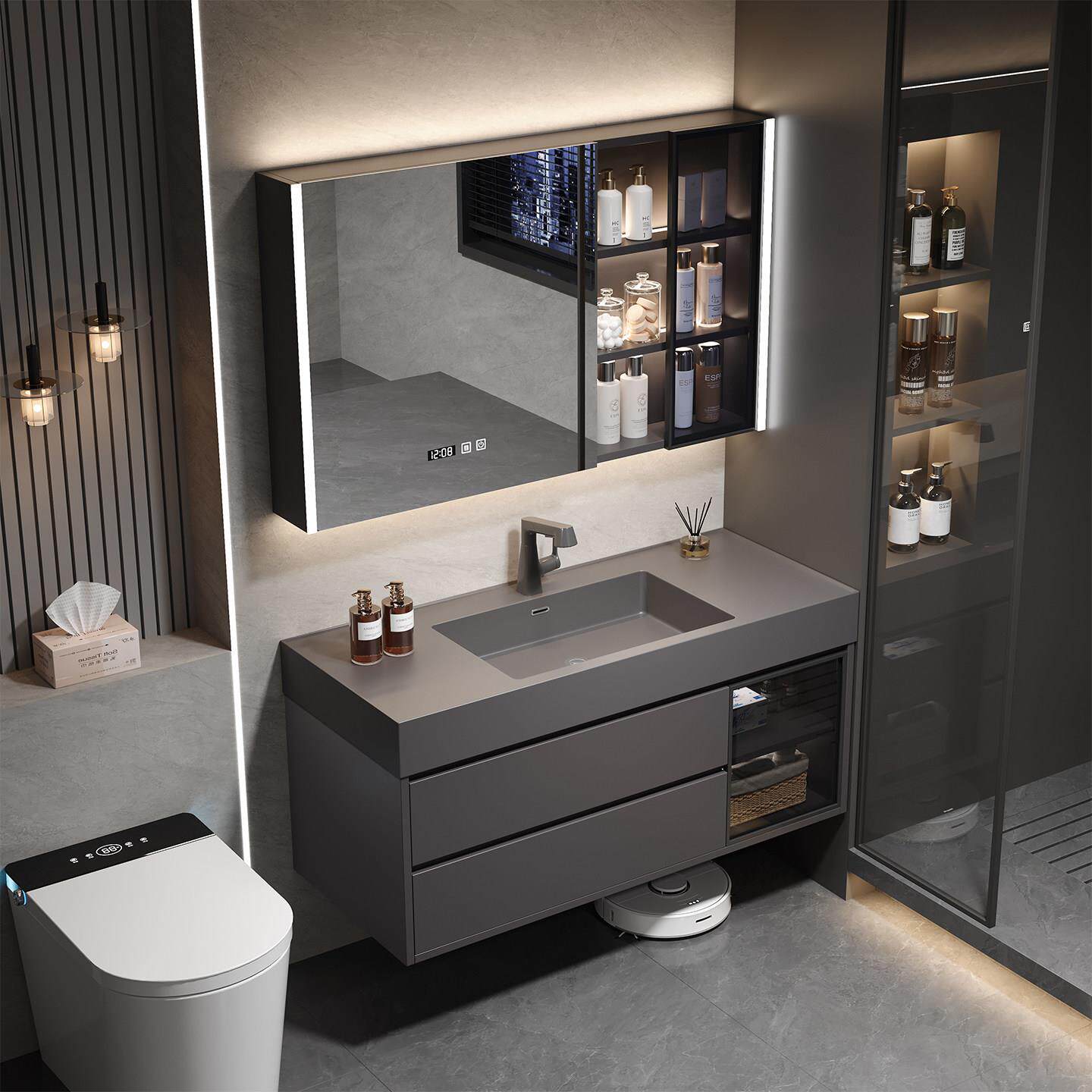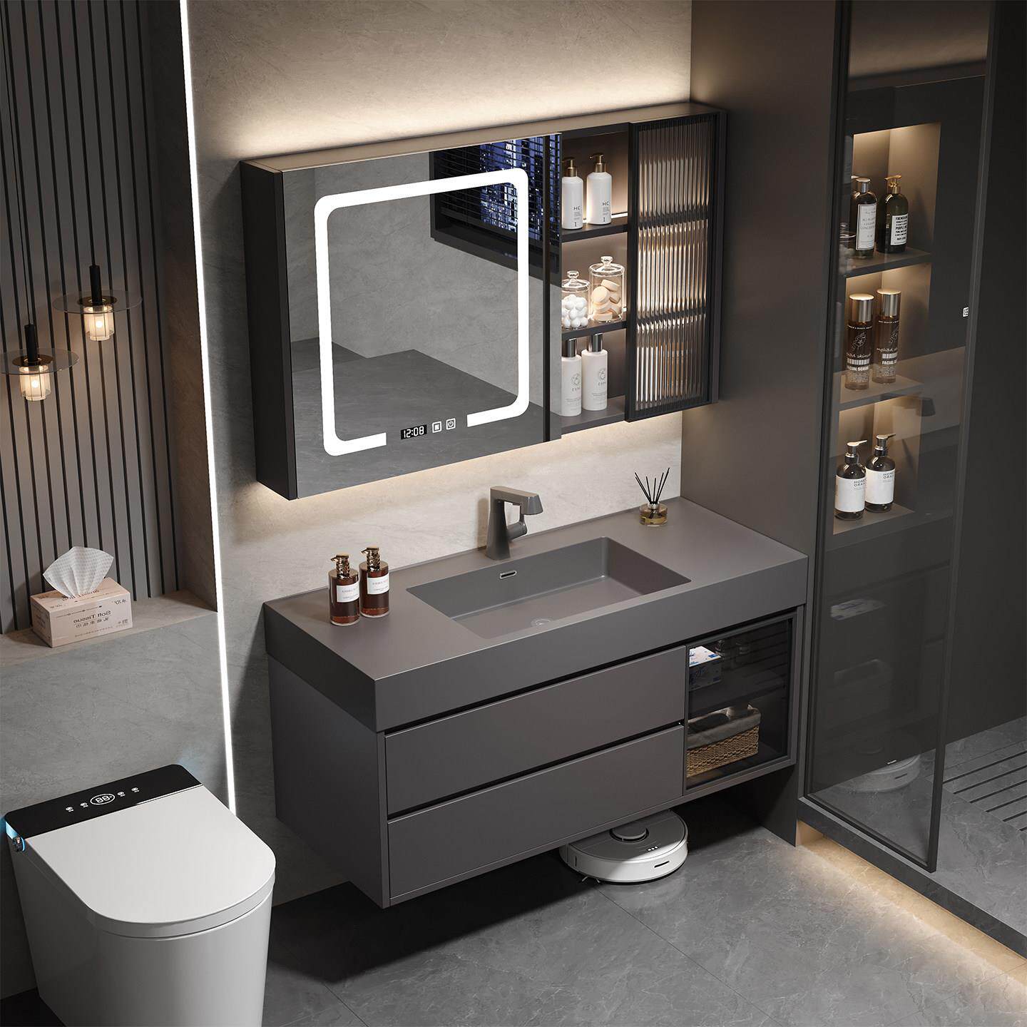 轻奢风蜂窝铝智能浴室柜收纳组合卫生间微晶石一体盆洗手洗脸