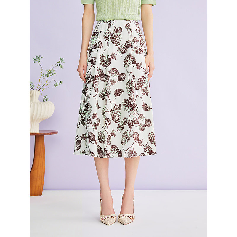 YINER音儿2026夏季新款时尚优雅艺术印花棉弹A字伞摆气质半身裙