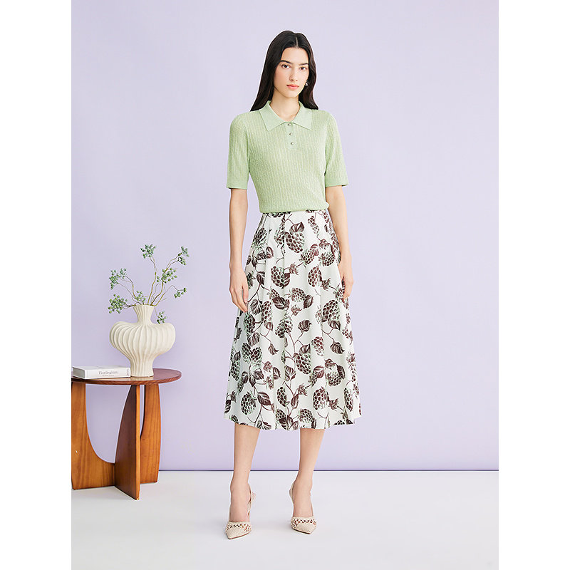 极尔斯 桃花皱半身裙
