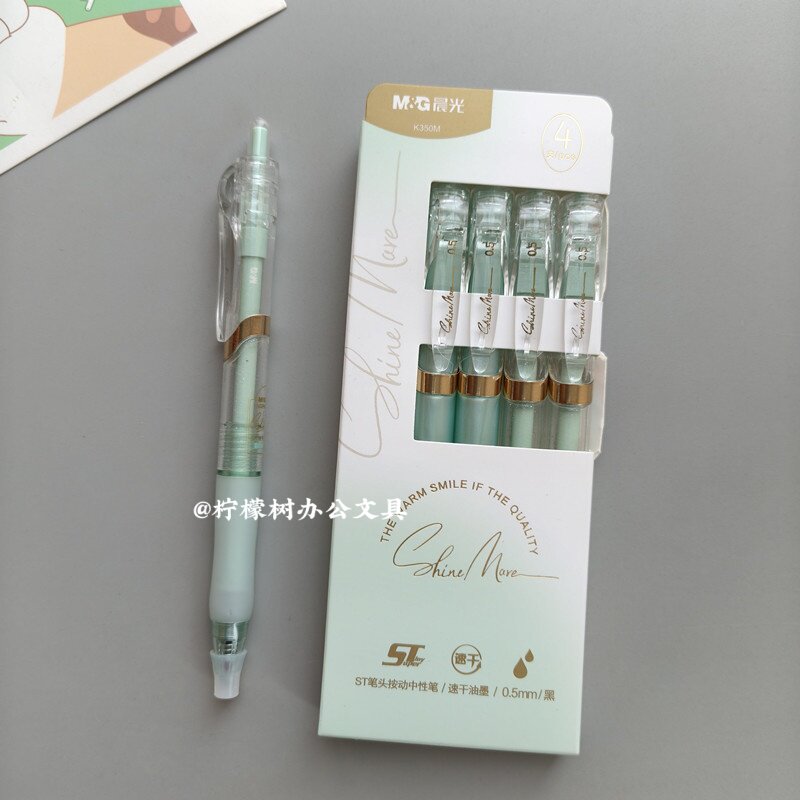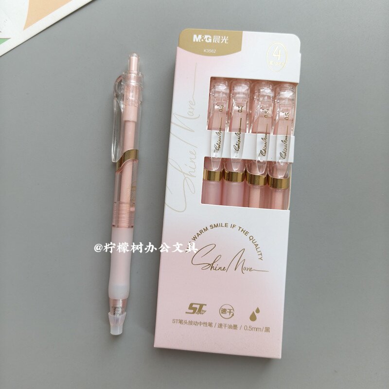晨光粉杆按动笔中性笔学生刷题专用ST头ins高颜值0.5顺滑速干黑色