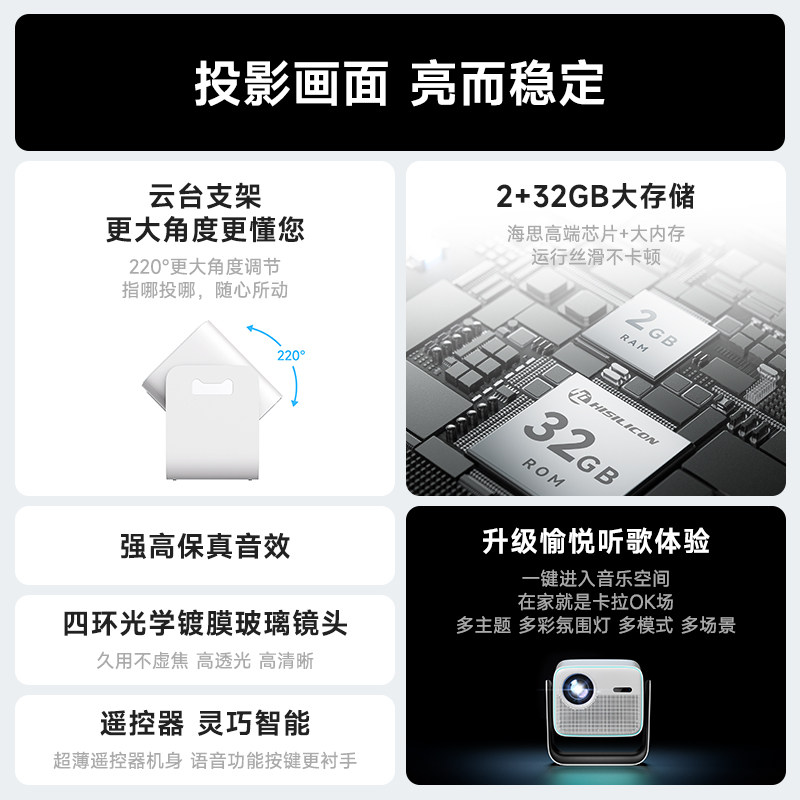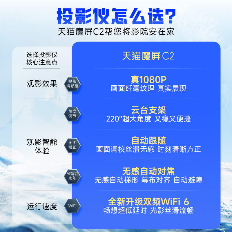 【李佳琦直播间】天猫魔屏C2智能投影仪家用云台家庭影院超高清可连手机投屏可投天花板便携卧室