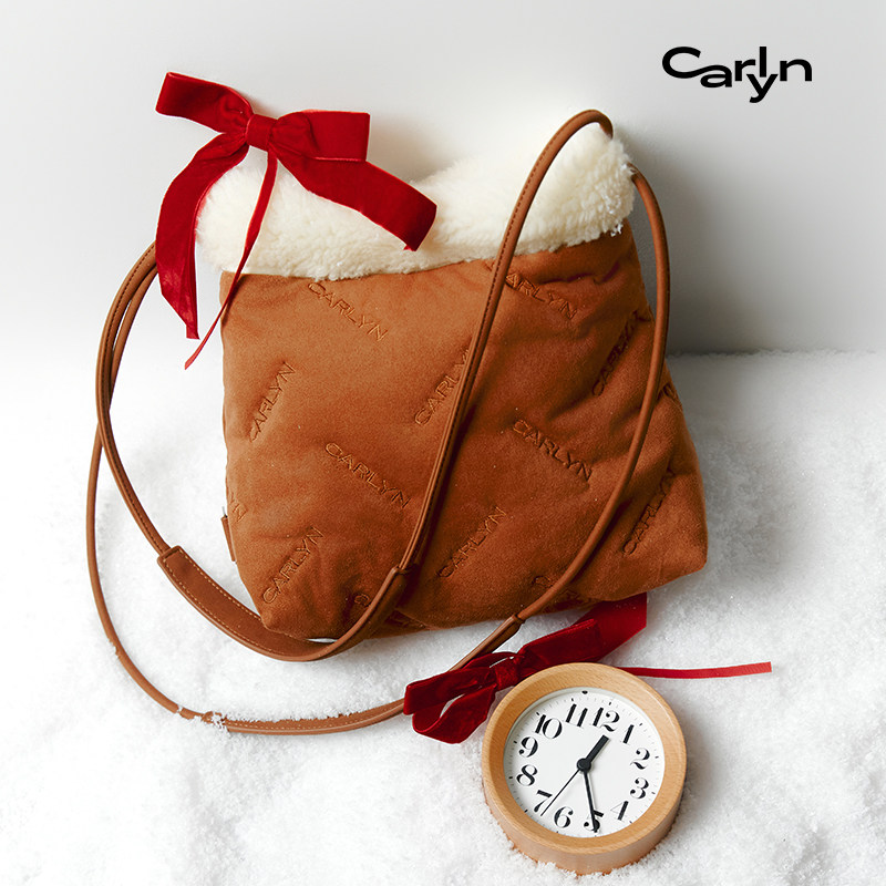 Carlyn SHEARLING TWEE MINI棕色毛绒垃圾袋单肩包手提云朵包