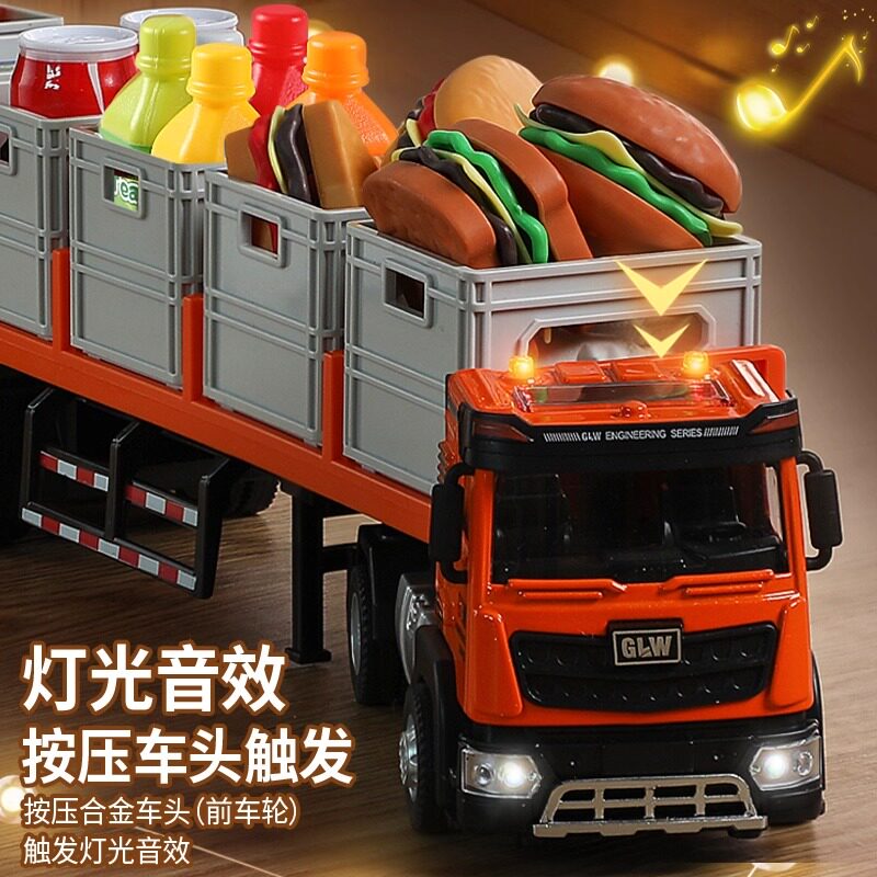 儿童大号模型卡车合金拖车男孩货车仿真运输车工程车玩具小车水果