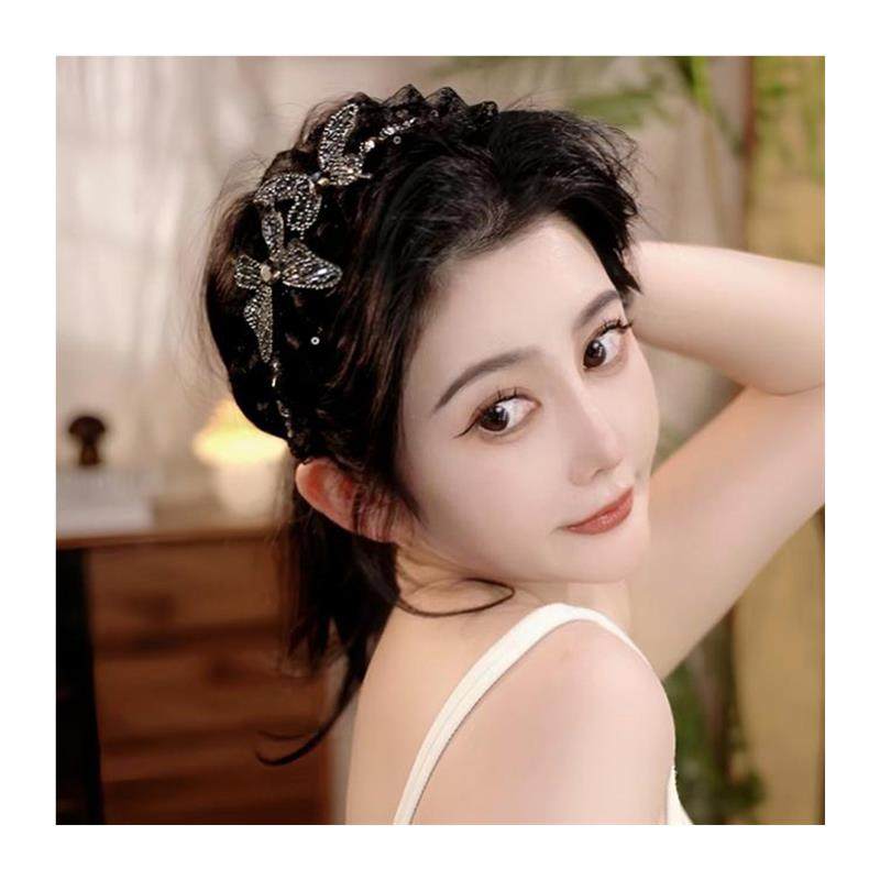 洋气水钻蝴蝶发箍女2025新款高颅顶蕾丝时尚百搭宽边头箍发卡头饰