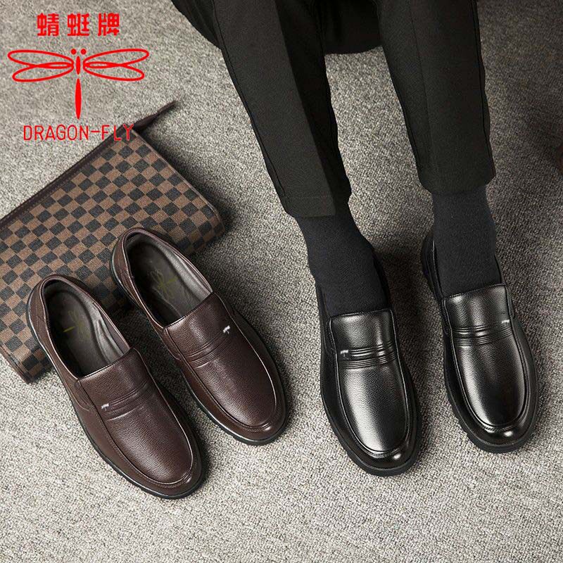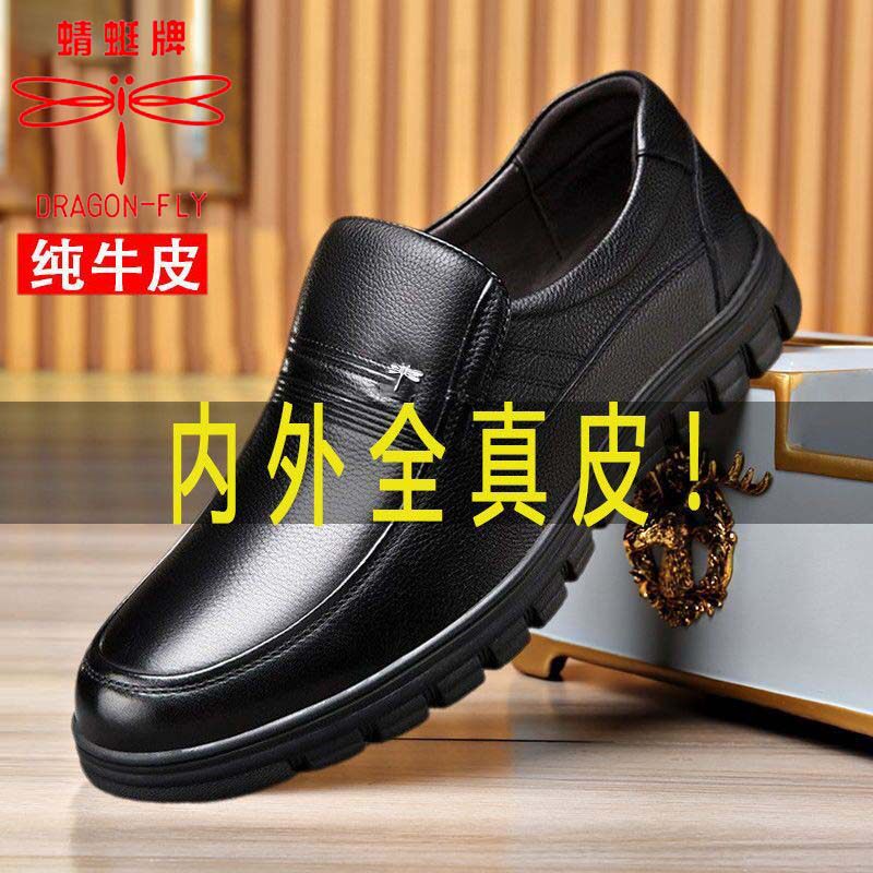 头层牛皮蜻蜓牌男士真皮鞋中年人皮鞋清仓柔软舒适牛皮防滑
