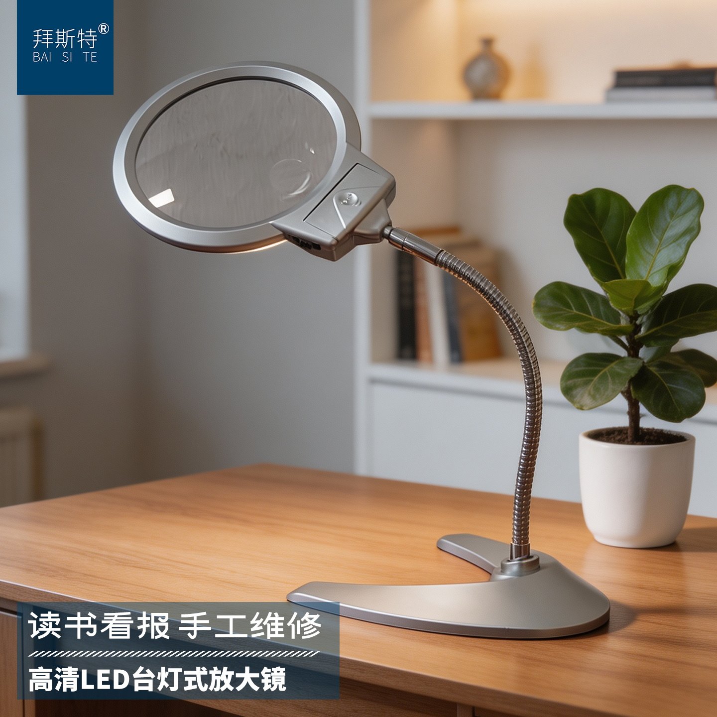 拜斯特台式带灯高清100mm10倍大镜片老人阅读维修电路板放大镜