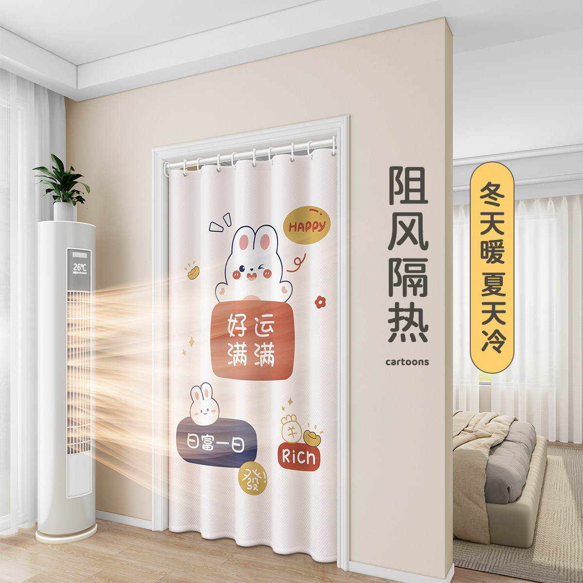 免打孔门帘秋冬空调挡风隔热挂帘卧室客厅防蚊隔断帘子浴室遮挡帘