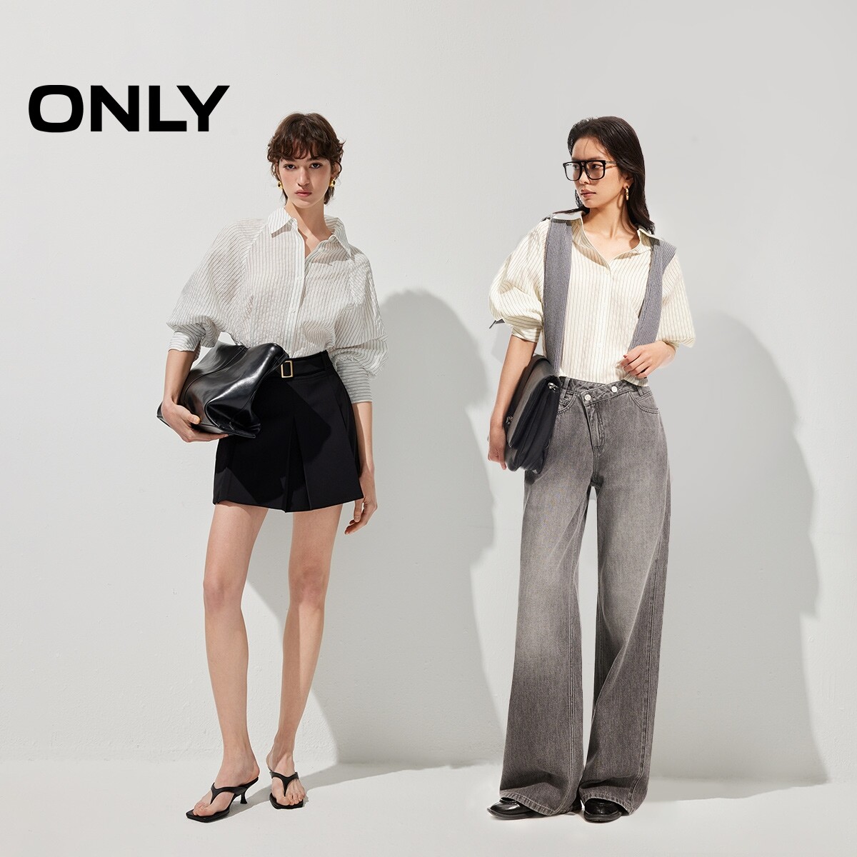 ONLY2026春季新款慵懒风显瘦纵向条纹设计宽松翻领长袖衬衫上衣女