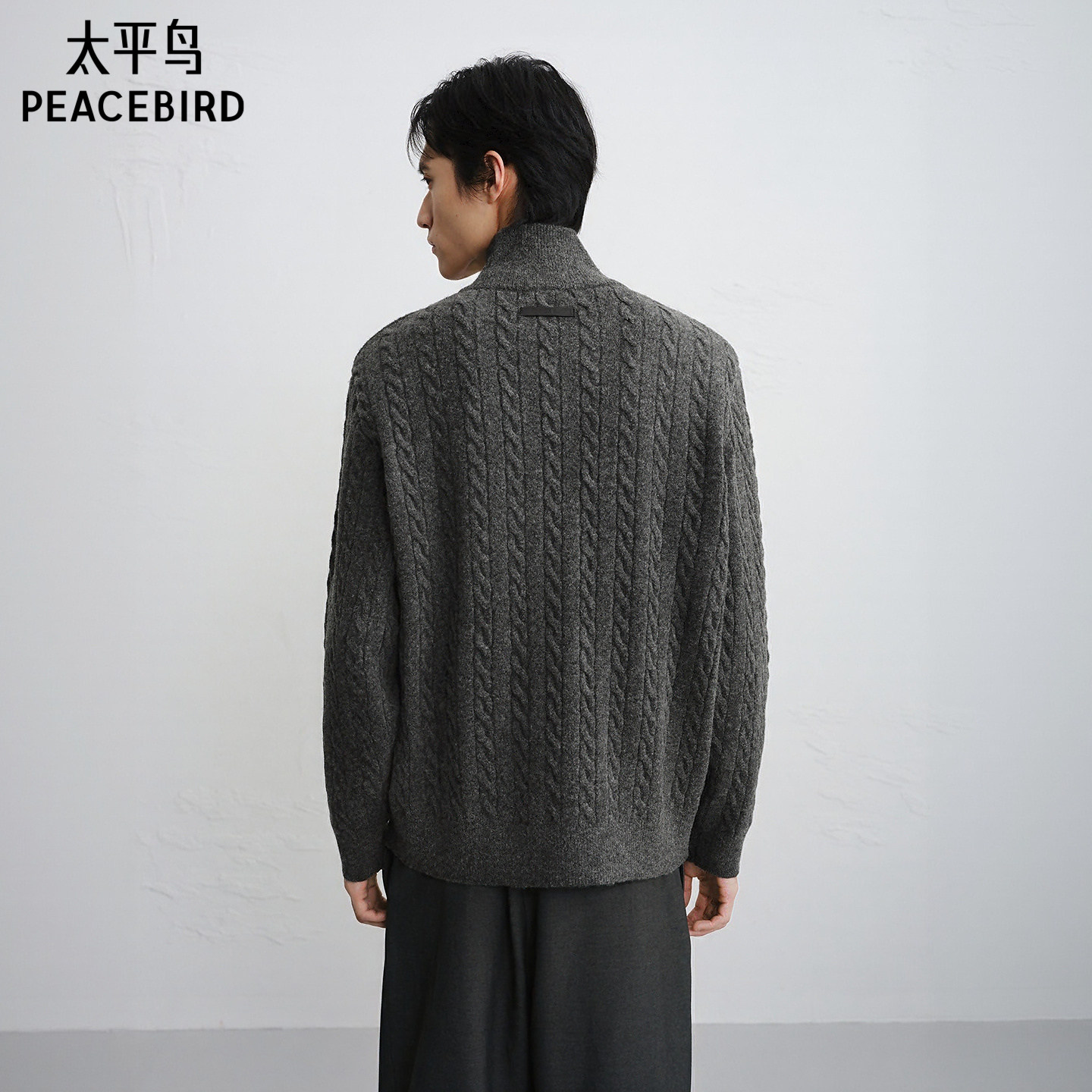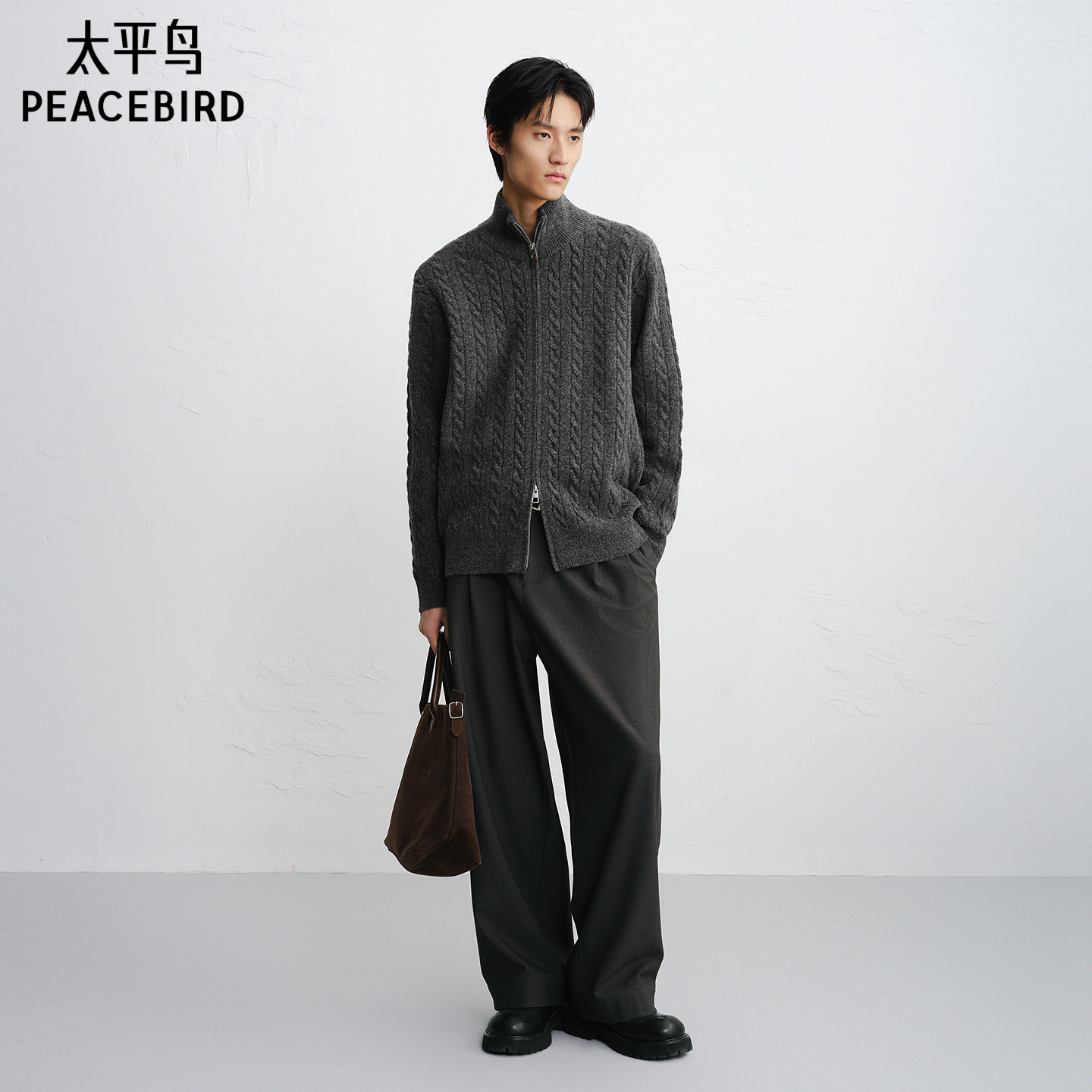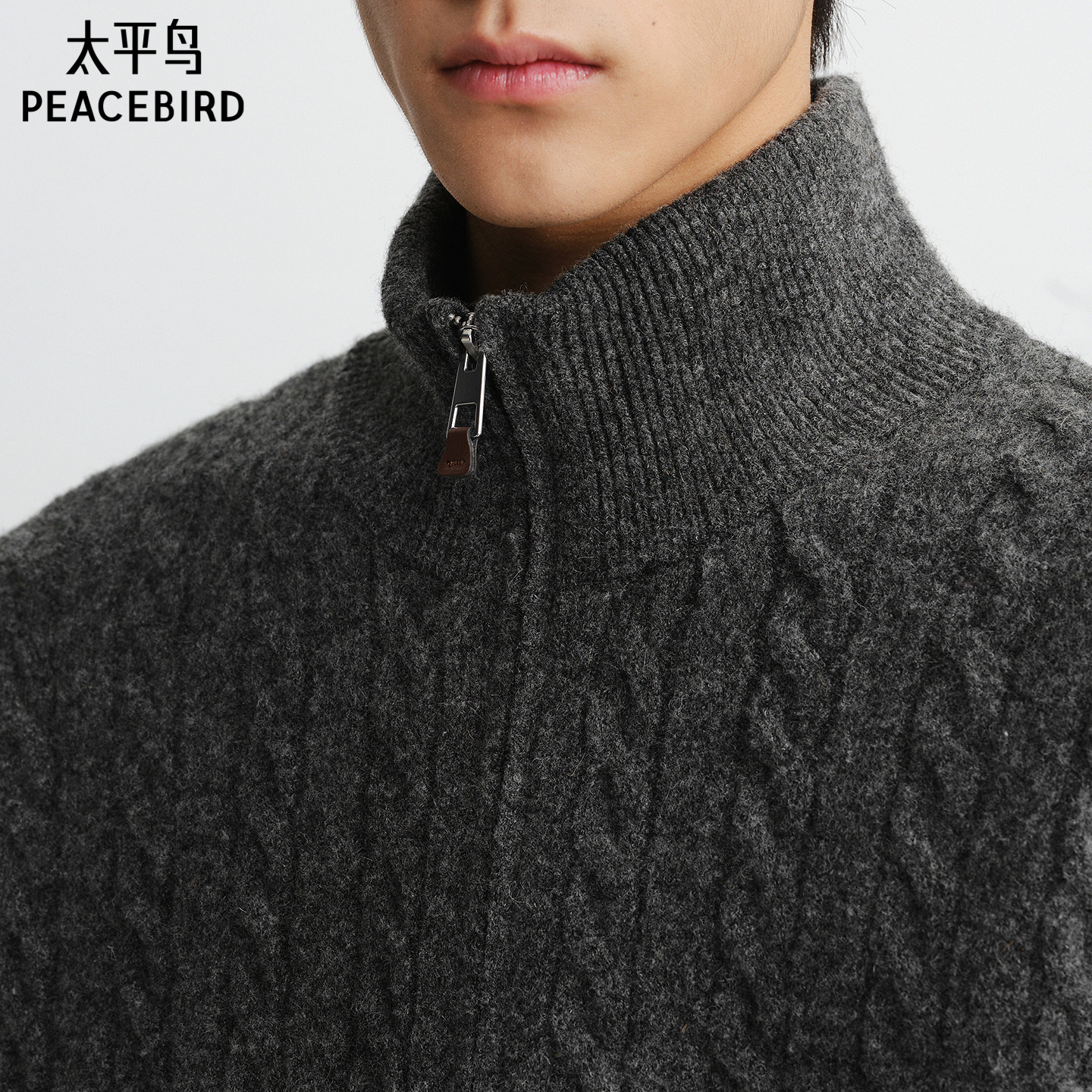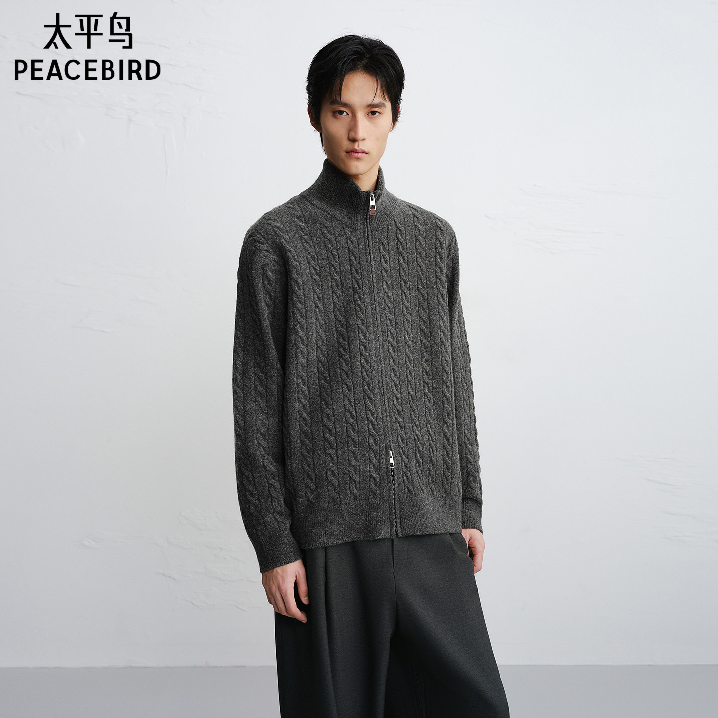 【商场同款】太平鸟男装 灰色毛衫男潮流开衫立领针织衫B1EAF4636