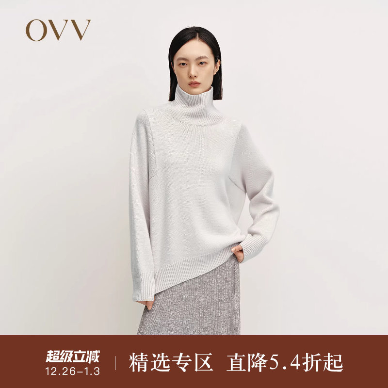 OVVOutlet秋冬热卖女装高领保暖舒适粗针阔版长袖休闲羊绒衫