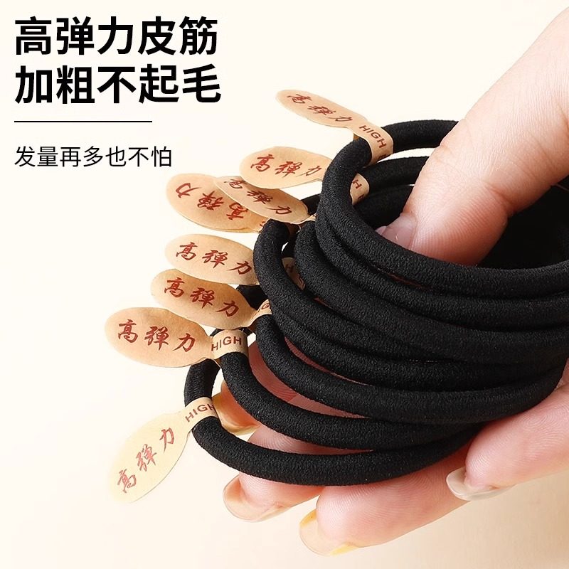 黑色皮筋发圈标签头绳无接缝0.6加粗加厚高弹力发绳简约耐用无缝