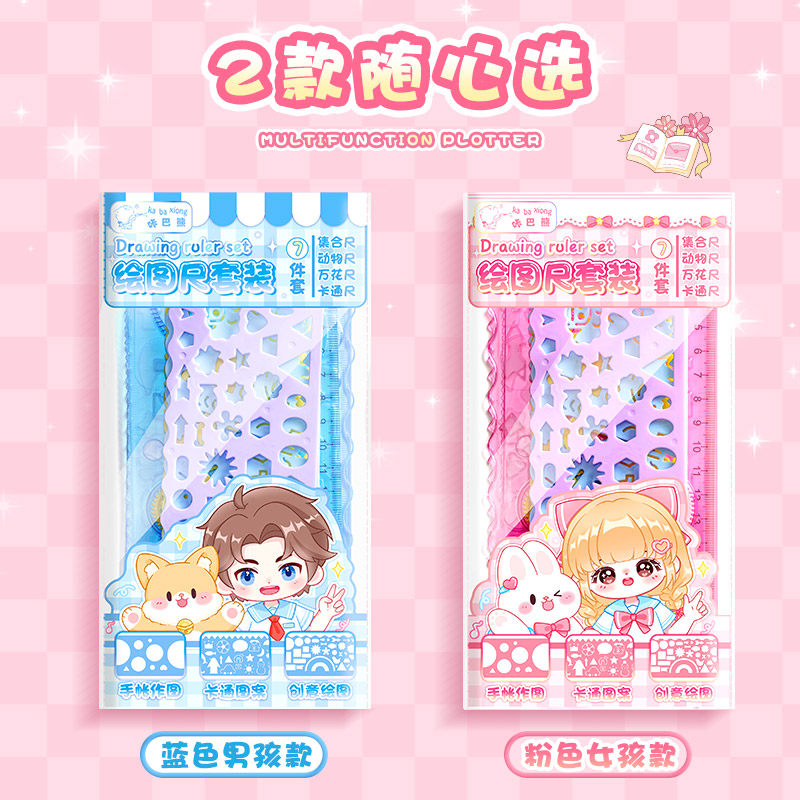 手抄报模板尺子小学生多功能万花尺专用百变学习套装一年级二几何数学绘画直尺软画图绘图能镂空工具神器文具