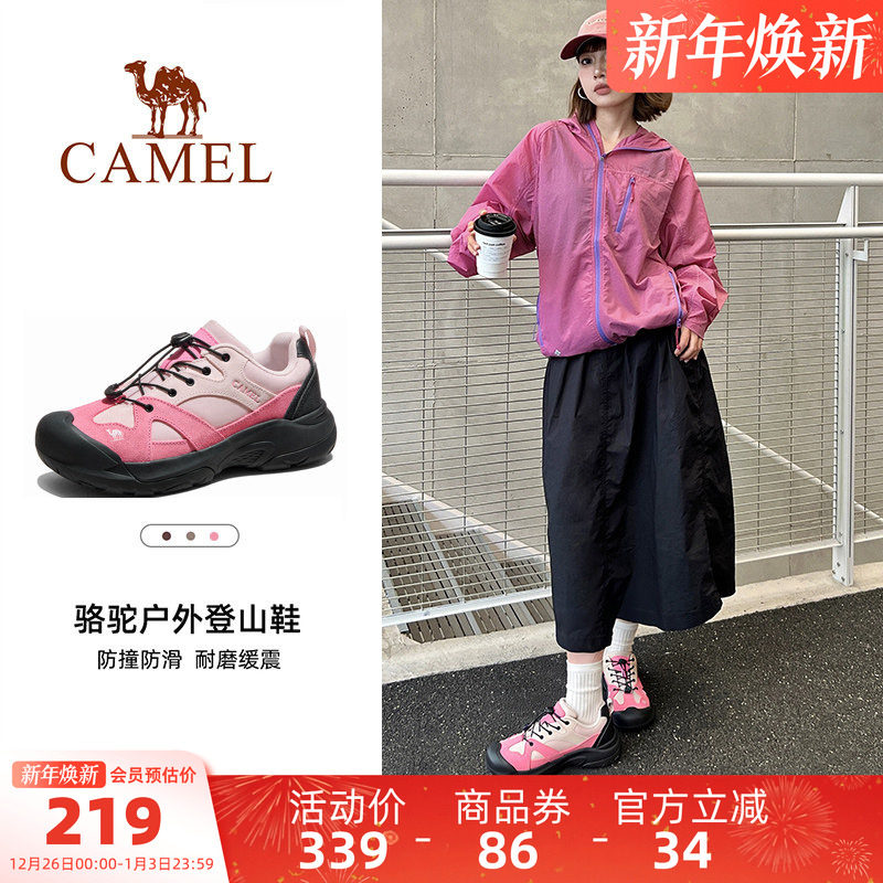 骆驼女鞋2025秋季新款户外丑萌鞋女百搭运动鞋厚底耐磨登山徒步鞋