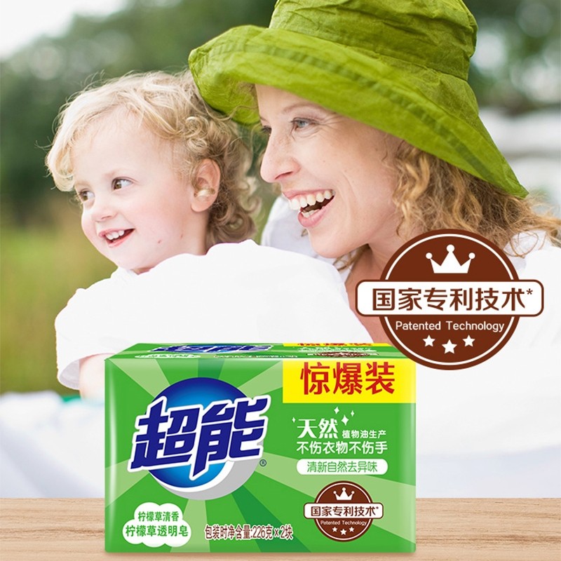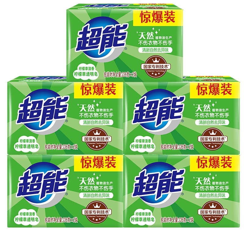 超能肥皂洗衣皂家用实惠装226g10块椰果透明皂内衣皂柠檬草整箱批