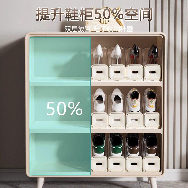 鞋子省空间透明鞋盒鞋柜分层收纳盒折叠放鞋托架双层鞋架收纳神器