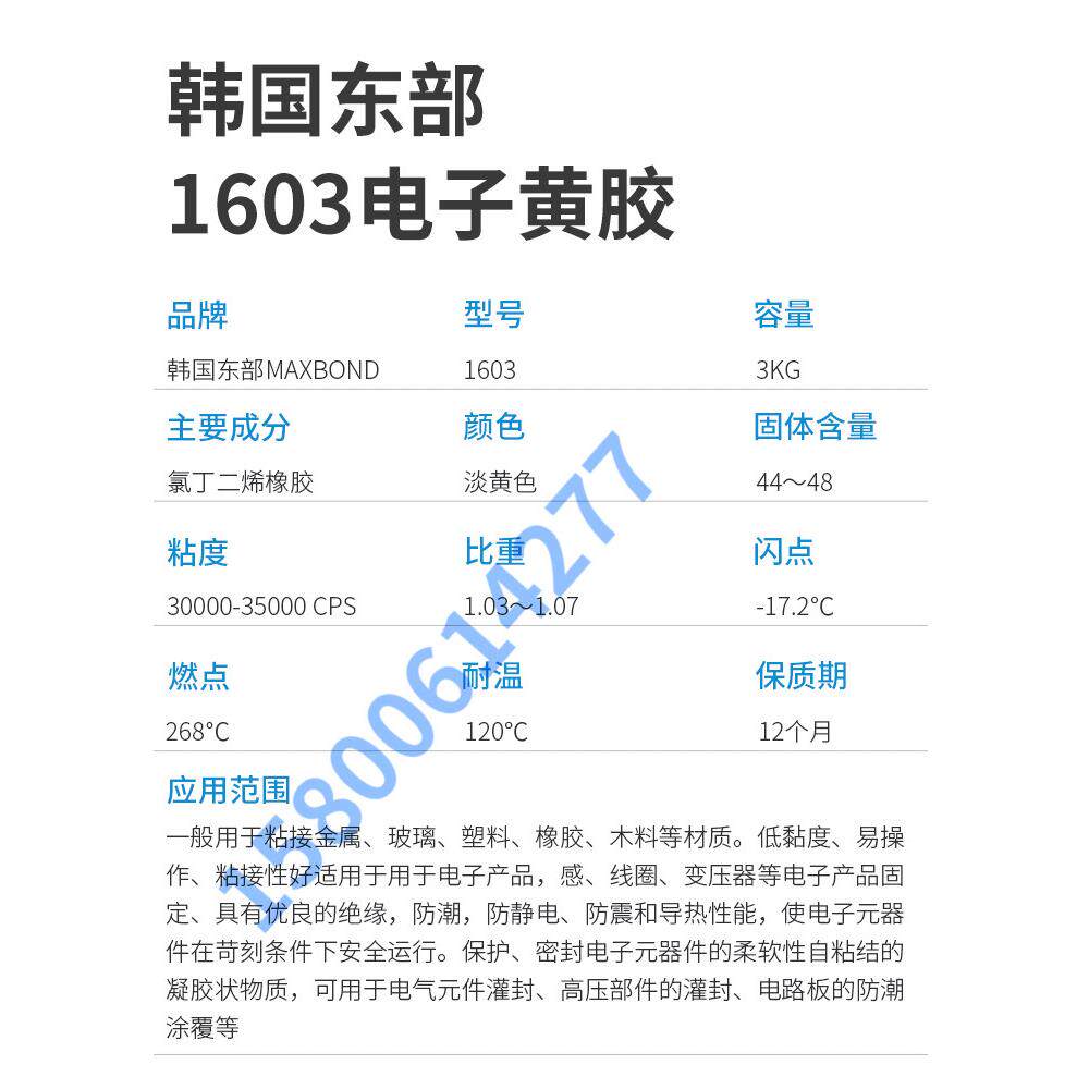 韩国东部1603 HFR-HS(H) 阻燃UL电子黄胶3kg元器件固定1603HFRHS