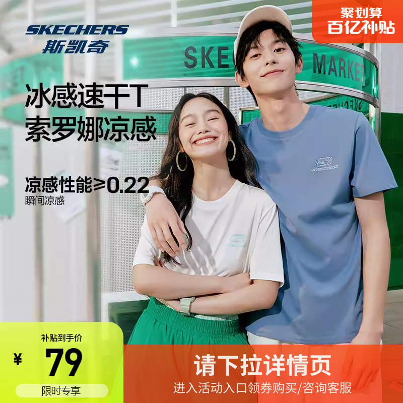 斯凯奇男女情侣款凉感短袖T恤新款舒适速干运动时尚百搭上衣