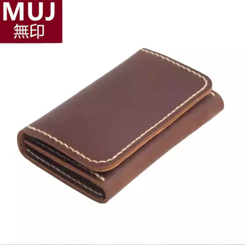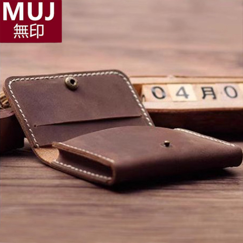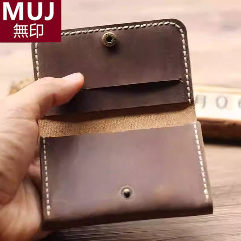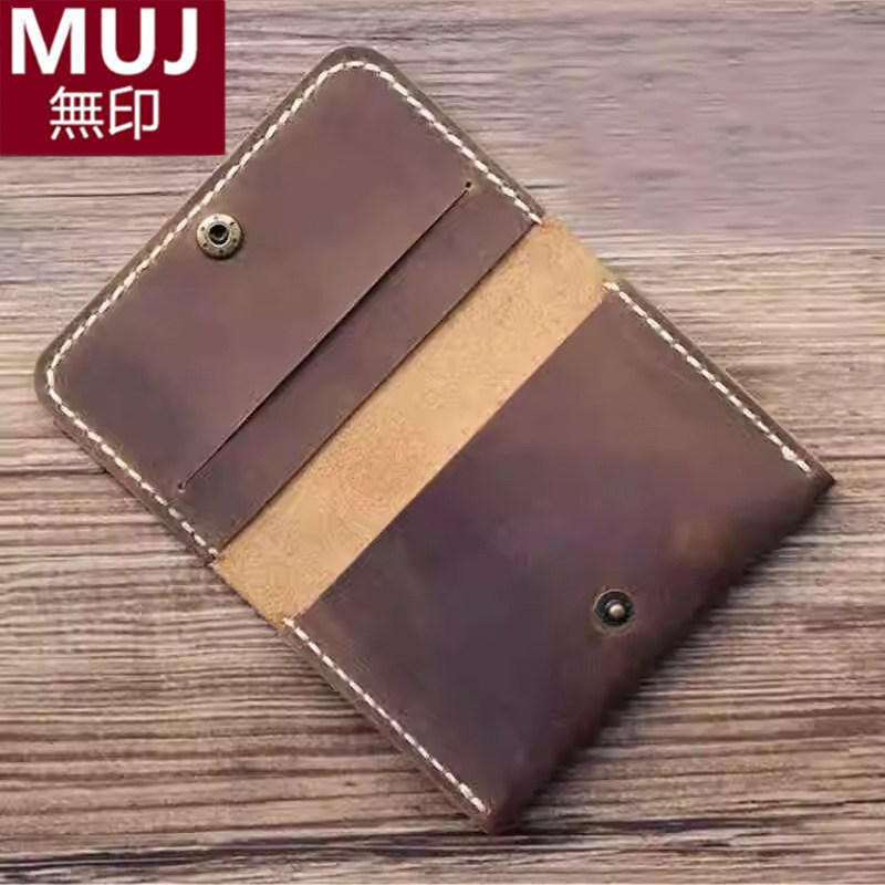 复古無印MUJ疯马皮名片夹简约卡包大容量多功能零钱包名片收纳包