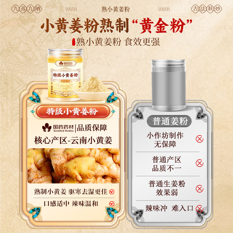 同仁堂云南小黄姜粉官方旗舰店食用特级正品罗平九蒸九晒姜粉冲饮