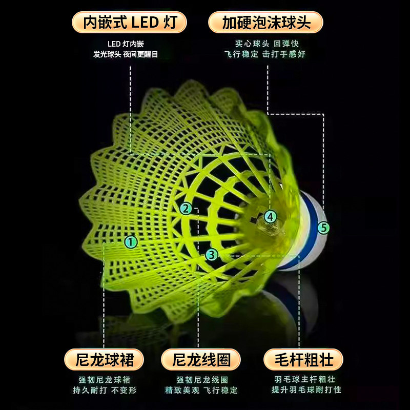 发光羽毛球夜用户外防风球耐打塑料胶训练球耐打发夜光高弹力w
