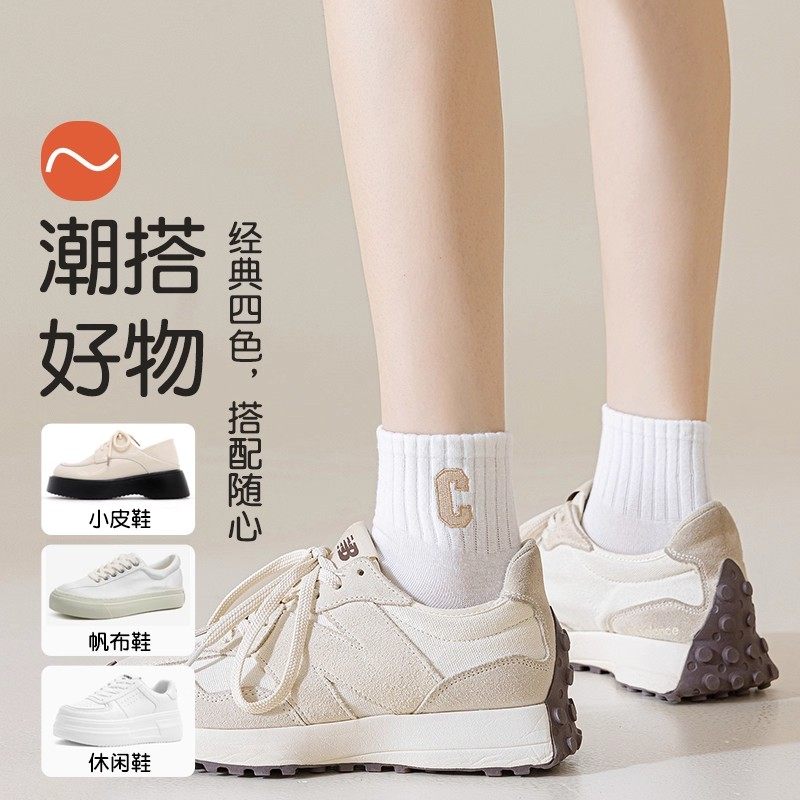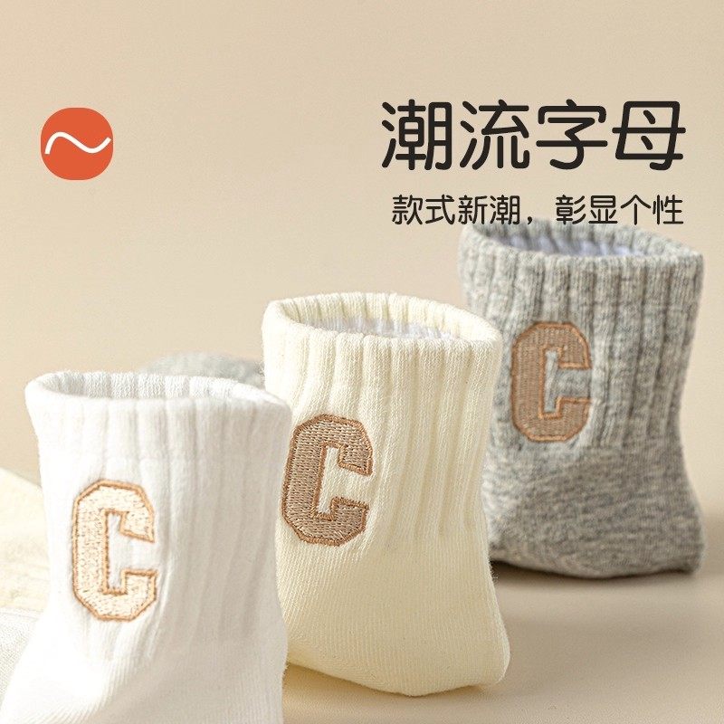 潮流字母袜子女2025新款爆款秋冬白色运动中筒袜无骨长袜防臭吸汗