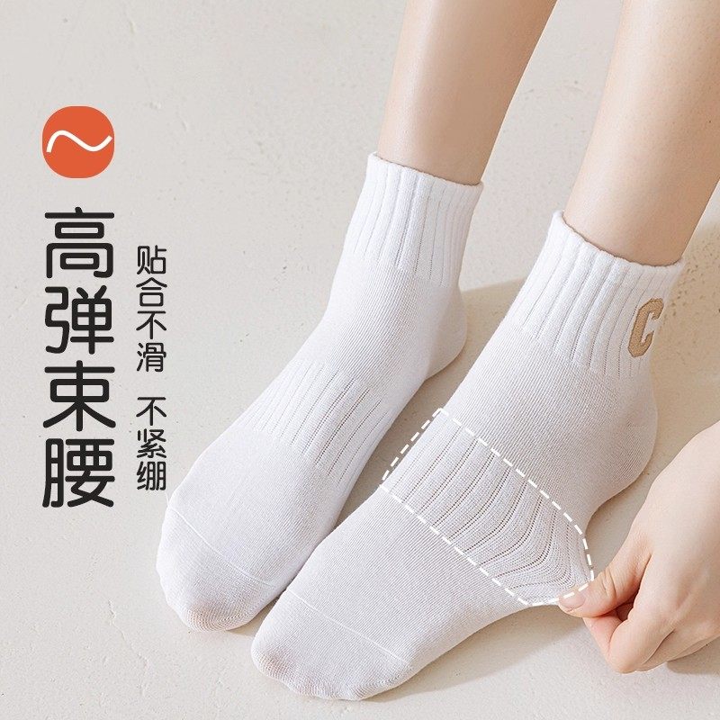 袜子女款纯棉中筒袜秋冬季抗菌防臭吸汗运动棉袜春秋款无骨短筒袜