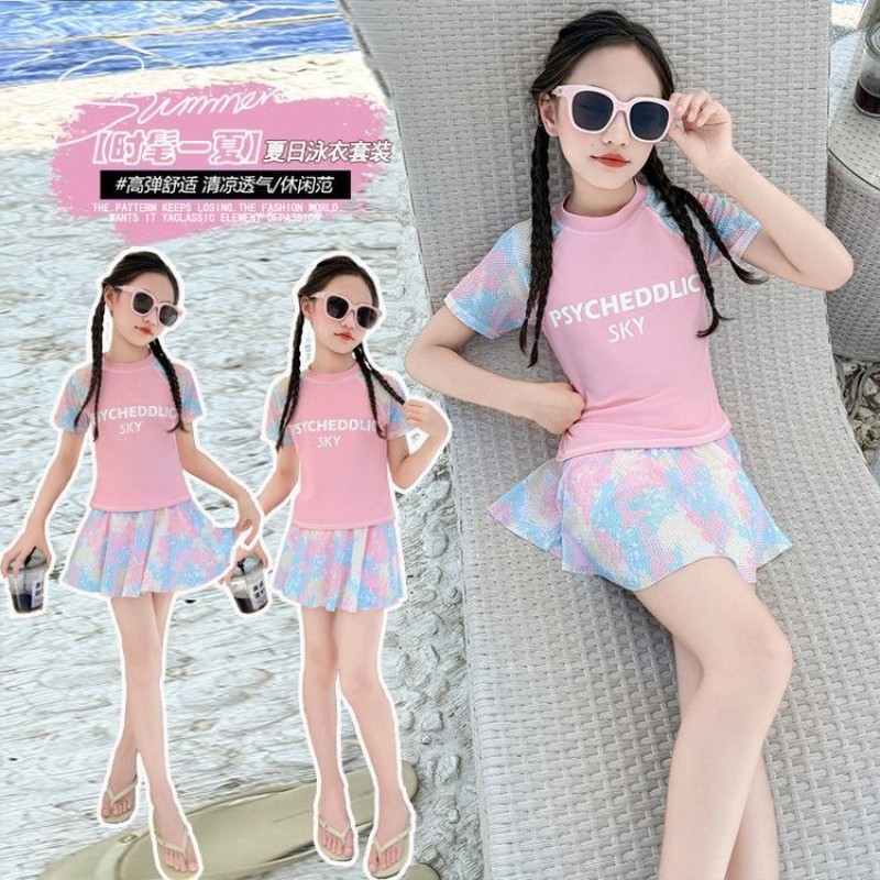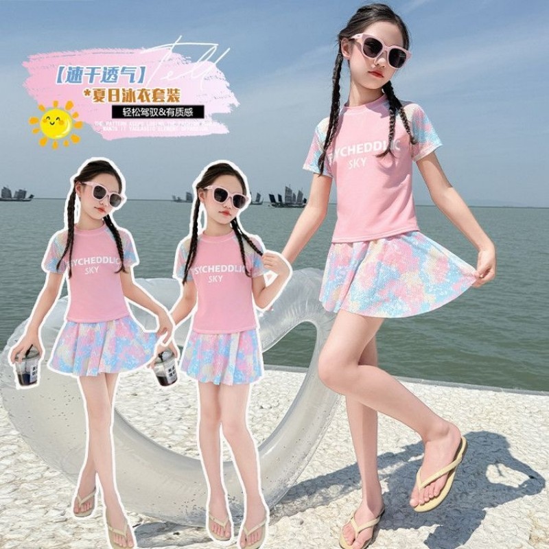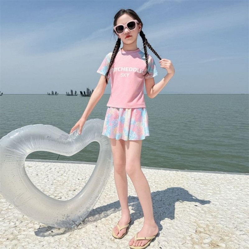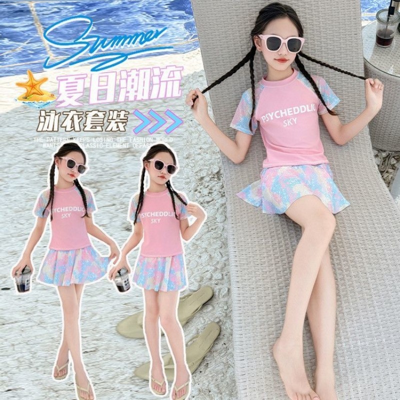 儿童新款女童泳衣2025夏季女孩分体游泳衣学生温泉中大童运动泳装