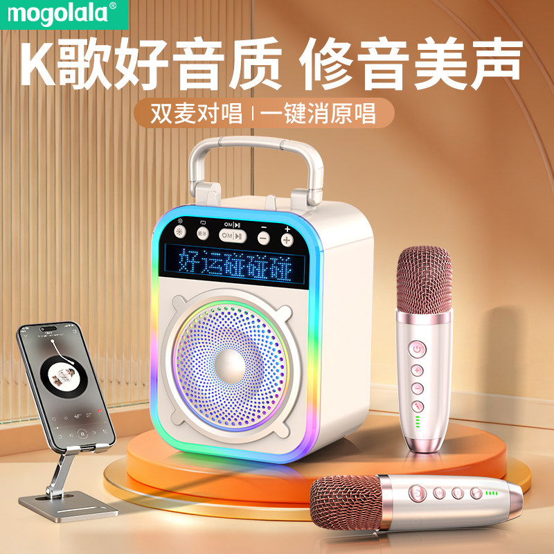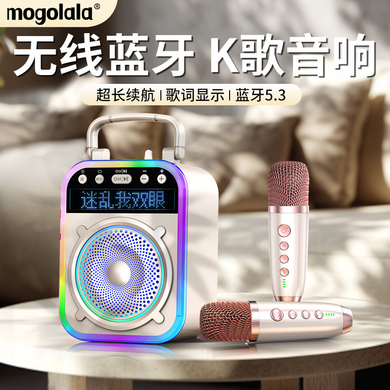 户外蓝牙音箱K歌音响便携氛围灯无线麦克风一体机室外跳舞低音炮