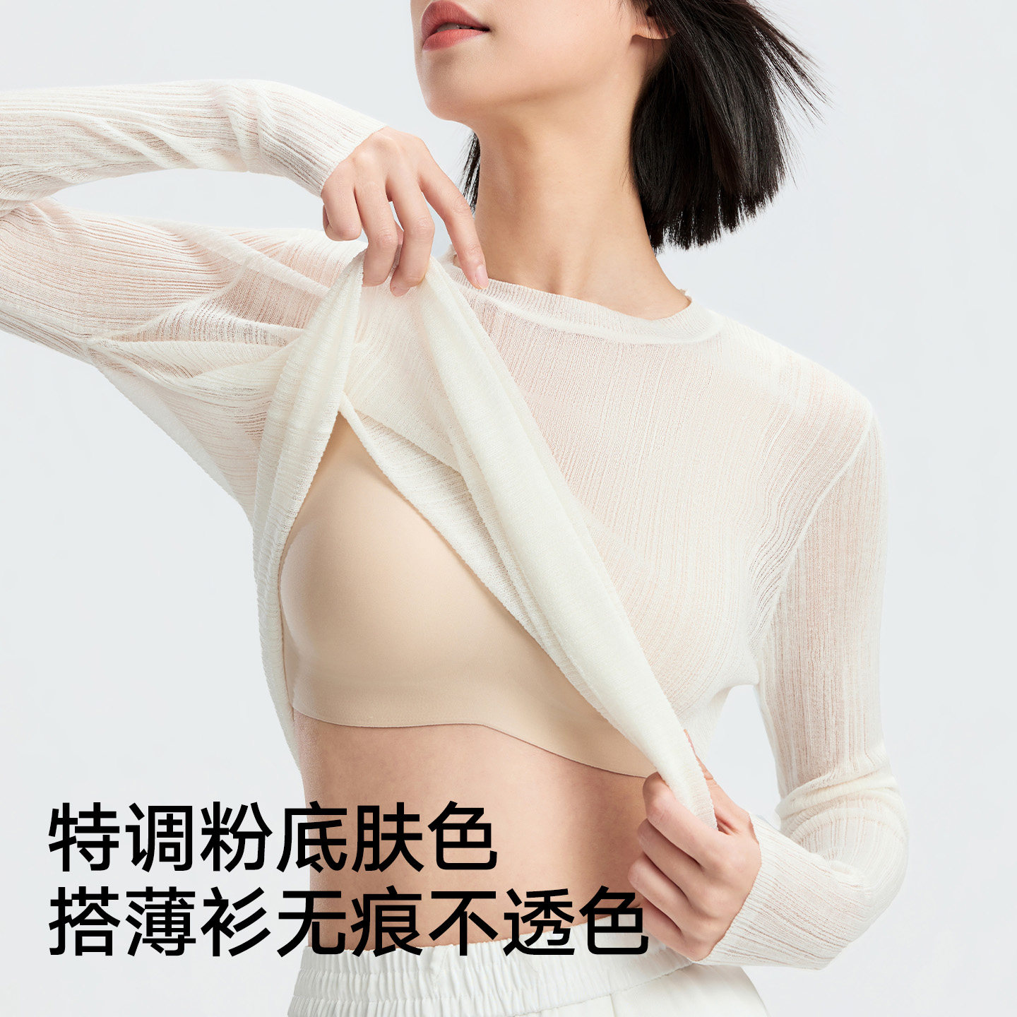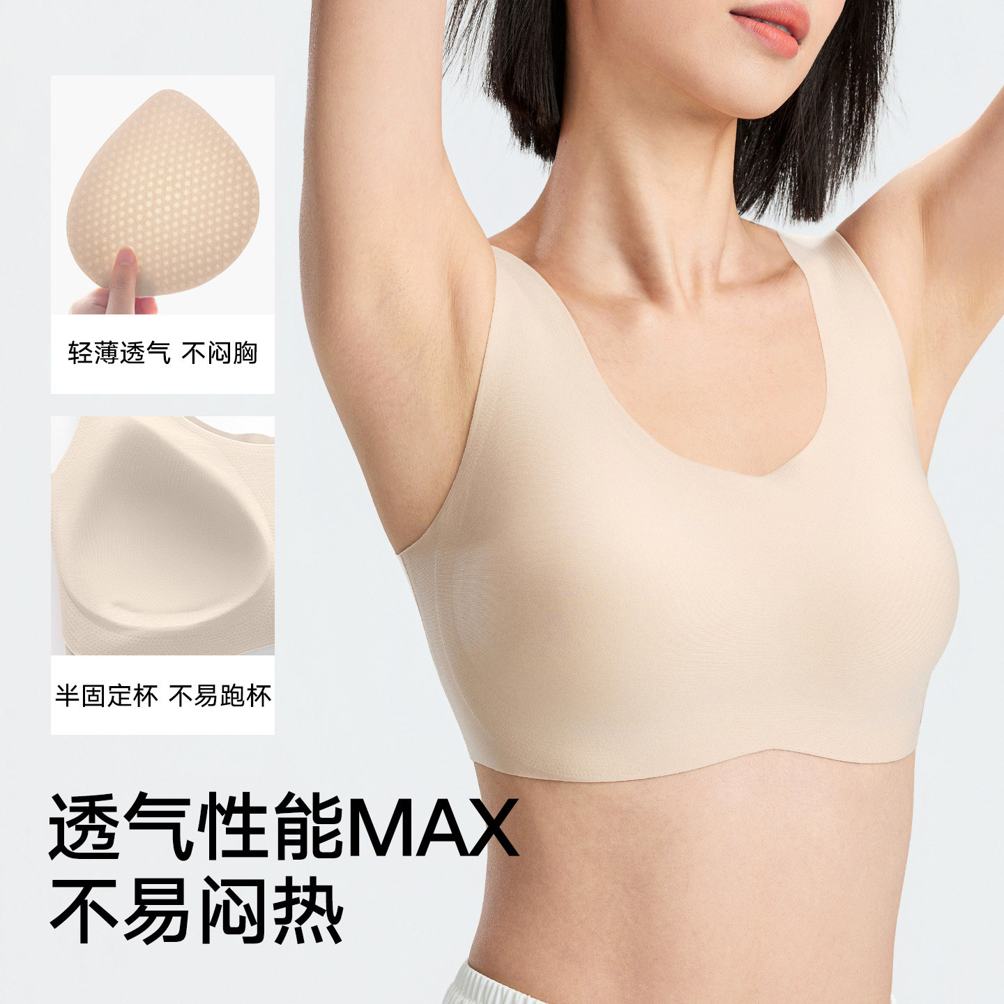松山棉店蚕柔粉底液隐形内衣无痕裸感文胸透气背心聚拢运动内衣