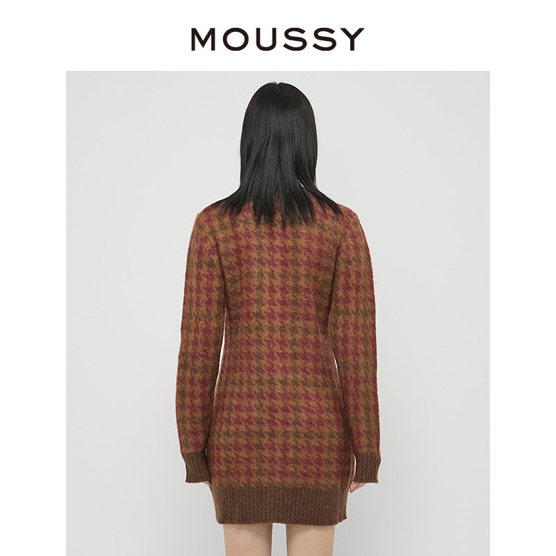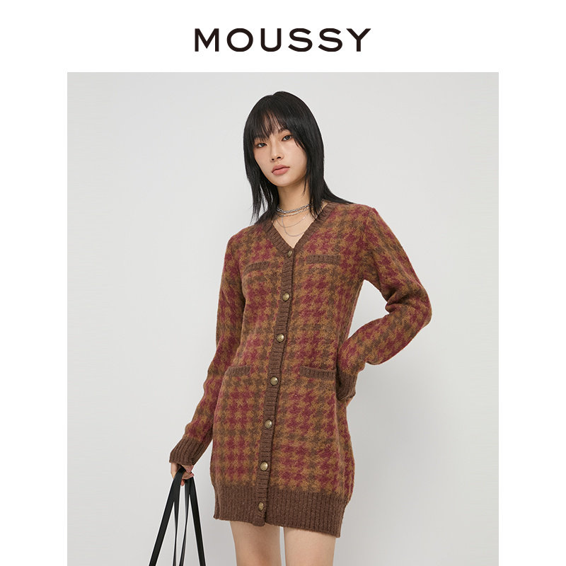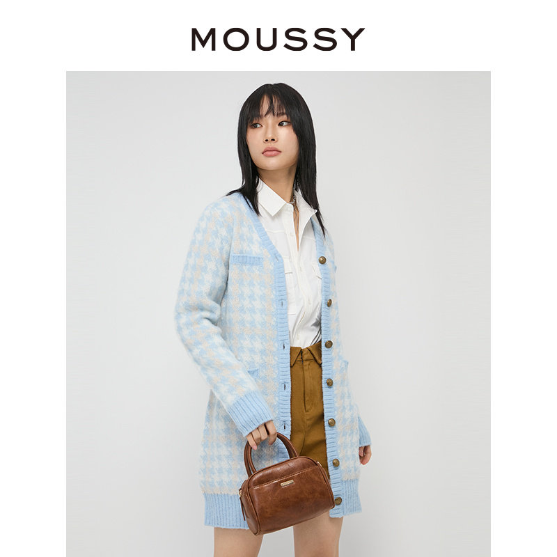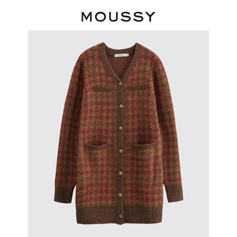 MOUSSY 甜美学院风miu系小清新格纹长款针织开衫女028GA970-5150