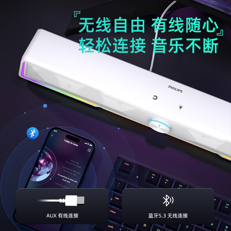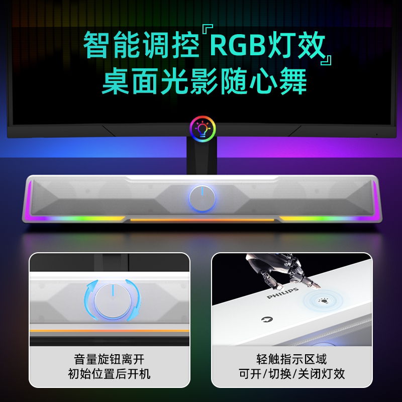 飞利浦SPA4100家用桌面有线电脑音箱笔记本RGB电竞游戏多媒体音响