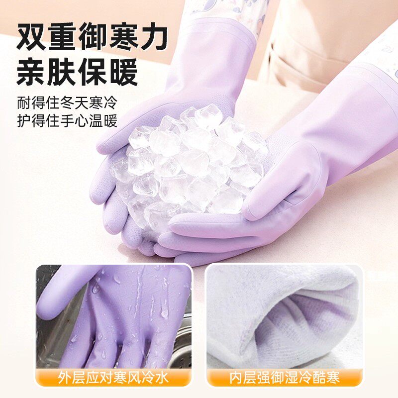 洗碗手套女加绒冬天家务清洁厨房耐用防水加厚橡胶乳胶洗衣服刷碗