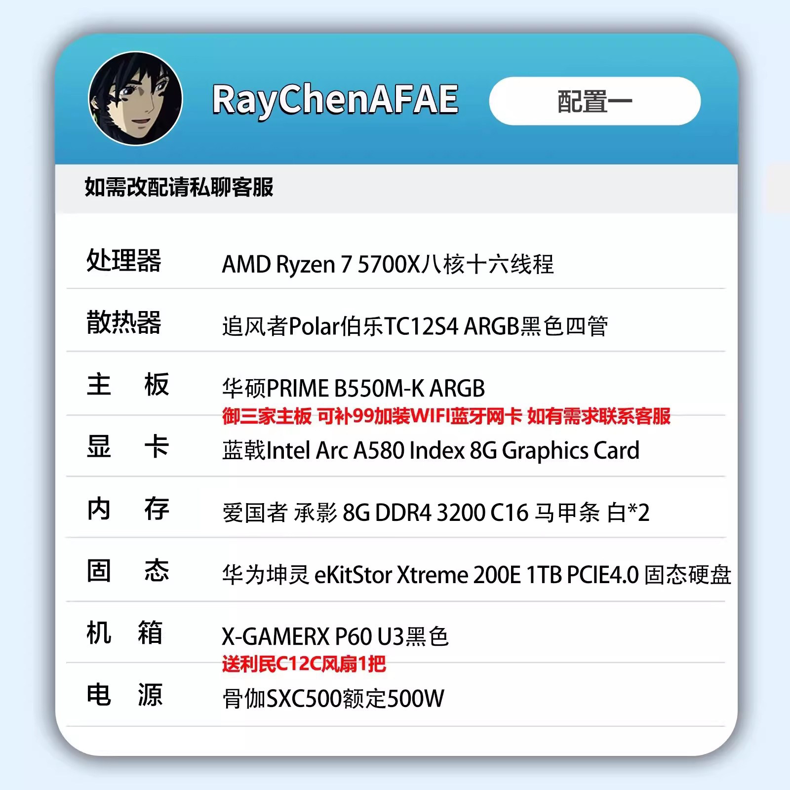 5700X+A580 8G网游小钢炮便携机箱高性能DIY游戏生产力电脑主机