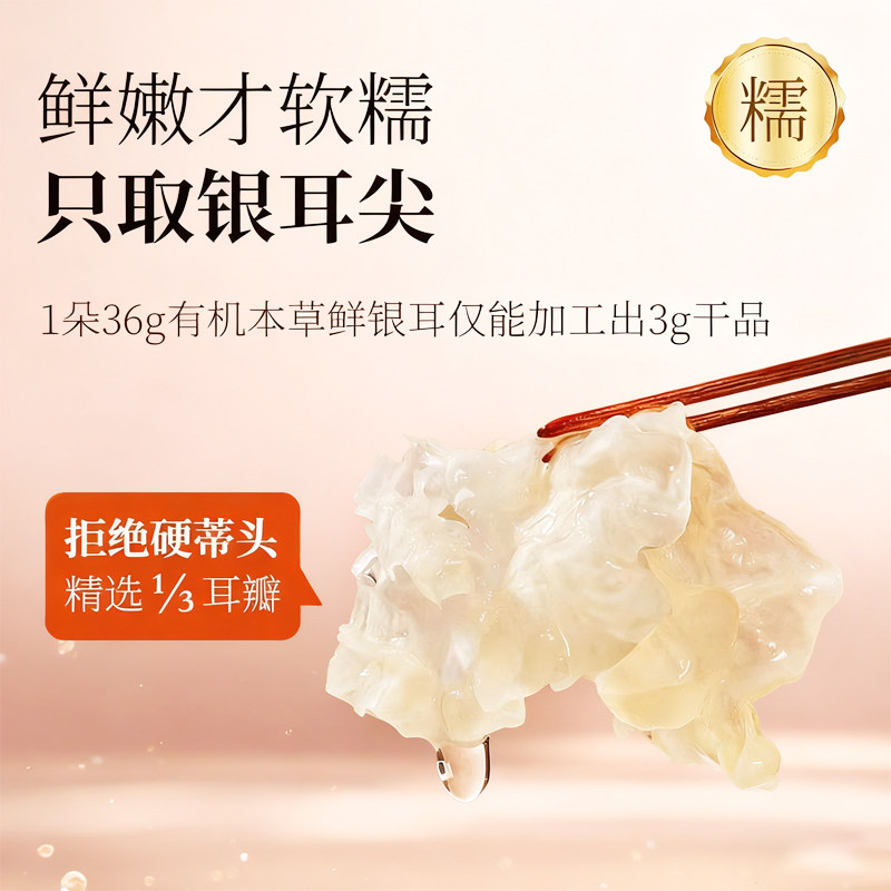 【菌妍】双有机本草银耳免洗古田干货冻干木耳银耳羹冲泡即食1