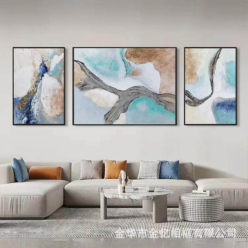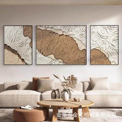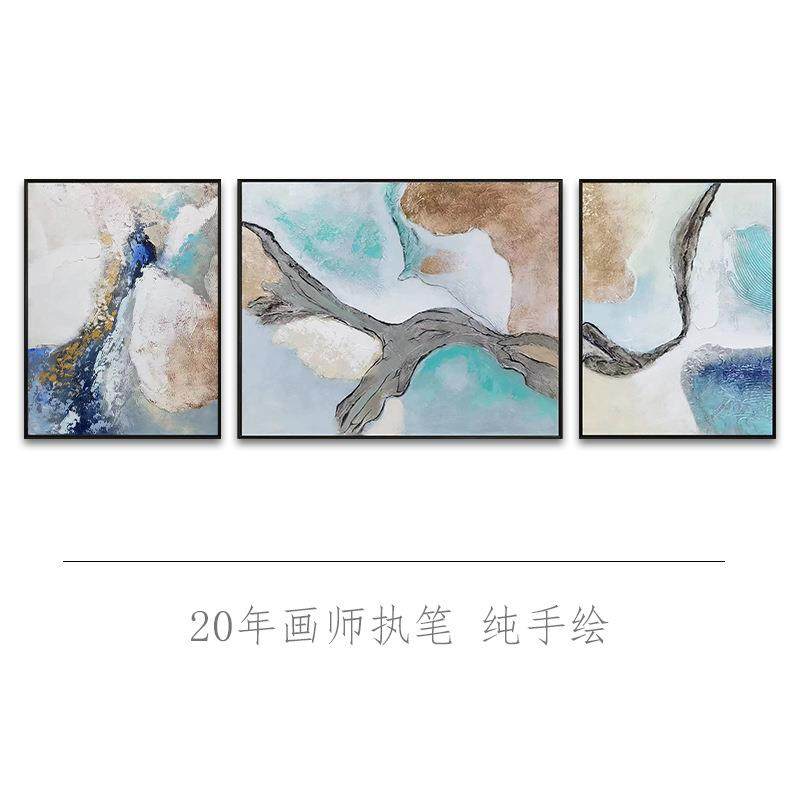 北欧抽象风格客厅装饰画纯手绘立体肌理三联挂画现代简约高档油画