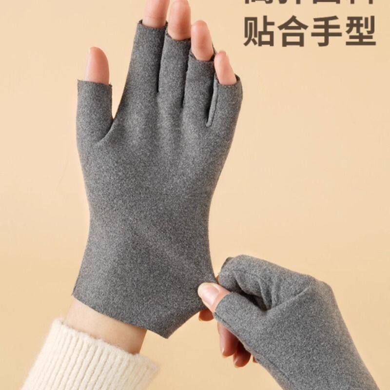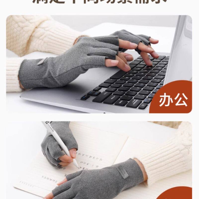 2025德绒手套冬季露指骑行保暖半指办公打字写字学生骑车防风发热